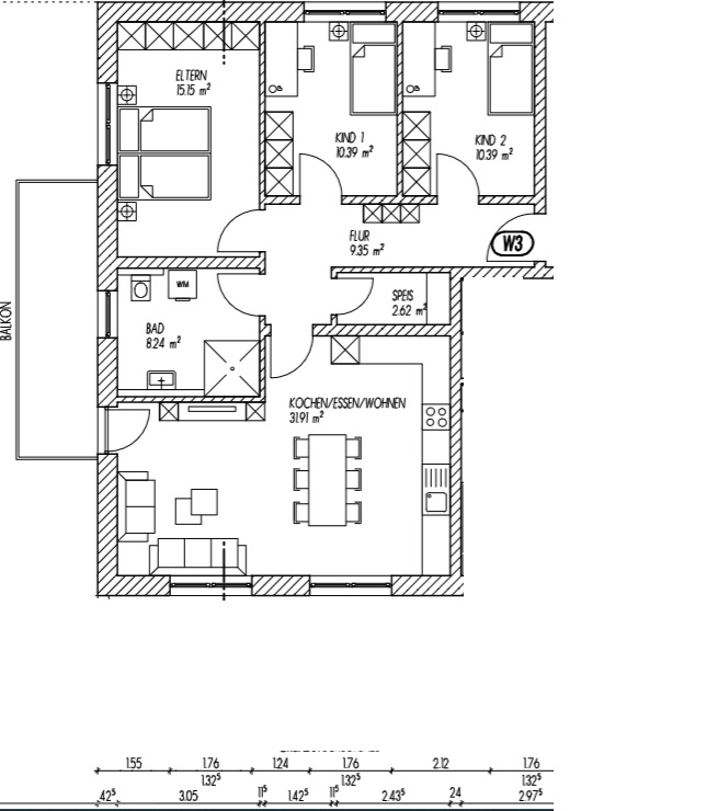 convert this floor plan into a realistic isometric 3d view of a full house show the space from an elevated angle with furniture walls and details visible interior visualization of a modern apartment with a clean minimalist design focus on contemporary stylish interiors with open spaces and functional layout simple straight lines and high quality materials combined with a neutral color palette white beige gray and natural accents such as wood modern furniture with elegant understated design minimal decorations and carefully placed highlights like designer lighting or select art pieces large windows provide plenty of natural light creating a bright and inviting atmosphere indirect lighting complements the natural light and adds a cozy modern touch kitchen is sleek and minimalistic with smooth fronts integrated appliances and clear organization bathrooms are modern and streamlined featuring walk in showers large format tiles and premium finishes style modern minimalist photorealistic high level of detail realistic lighting and shadows premium real estate visualization use the same furniture as shows on the plan do not change the orientation of the floorplan