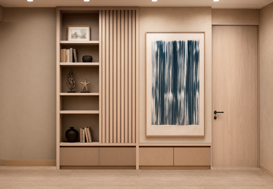 remove the s furniture and replace it for a wall with beige concrete