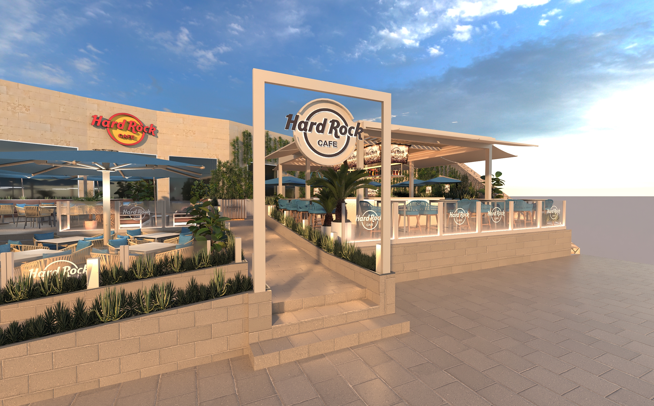 change entrance portal to a more solid construction with perforated metal cladding and some lighting