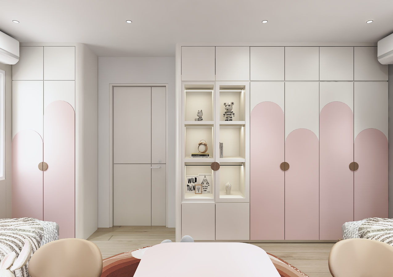 ubah warna dalam lemari kaca tembus menjadi pink muda