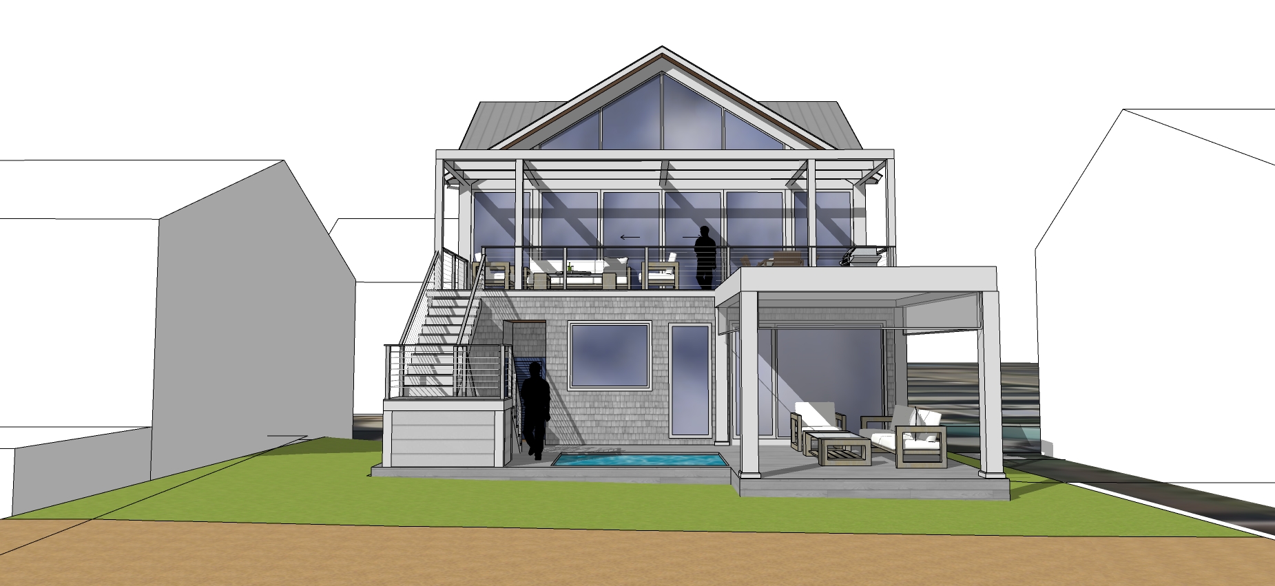 this is a beach house in rehoboth maryland you can t see the ocean in the image can you enhance the landscaping with grasses and sand native to rehoboth all trim is light grey