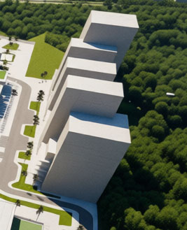es un hotel con un basamento comercial de 3 pisos y varias torres de 10 pisos de altura tiene cubiertas verdes y una piscina en una de las cubiertas es un edificio blanco y moderno