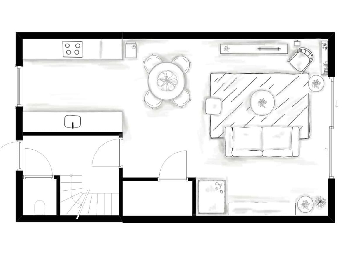 convert this floor plan into a realistic isometric 3d view of a full house show the space from an elevated angle with furniture walls and details visible use the same furniture as shows on the plan do not change the orientation of the floorplan