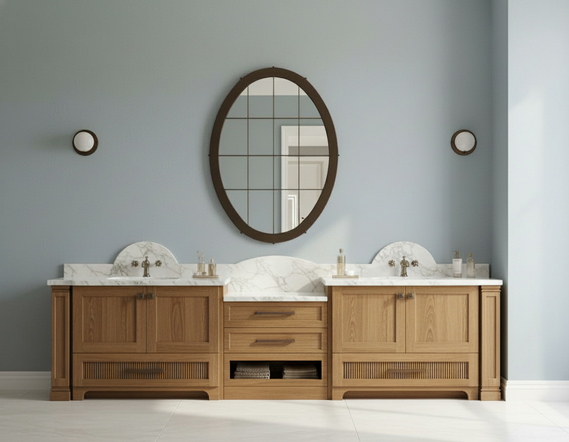 middle section is a knee space with small stool