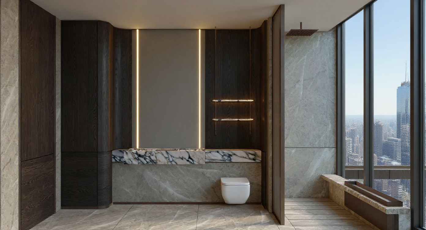 act as an expert space planner and top new york design firm and transform this this space into a chic soho loft inspired cocktail lounge with eclectic and varied seating sections between the windows and columns only every section should feel like a different experience ultra luxe furnishings sculptural seating and crafted yet utilitarian floor lamps directly relating to the design details of the reference image the lighting should be very warm 2200k floor should be warm honed concrete vintage area rugs are low contrast neutrals adding texture and warmth to the space remove the metal grid ceiling and instead have a white painted exposed beam ceiling typical of a new york loft sofas chairs ottomans cocktail tables winding banquets the focus is on conversation rather than the view and add gallery walls where art is presented in a salon style varying sizes and informal reduce the size of the columns and make them cylindrical do not change the orientation of the existing architecture or take any liberties with architectural elements