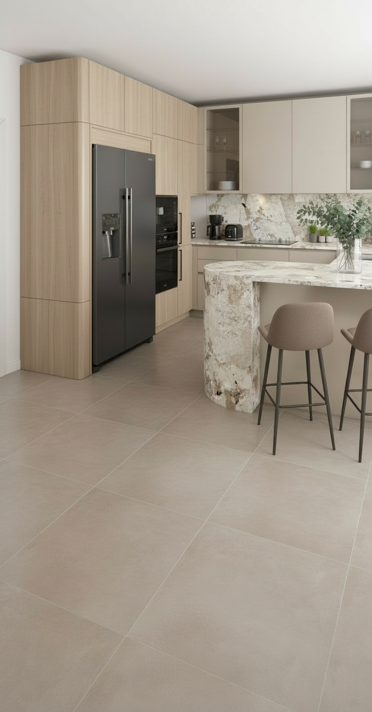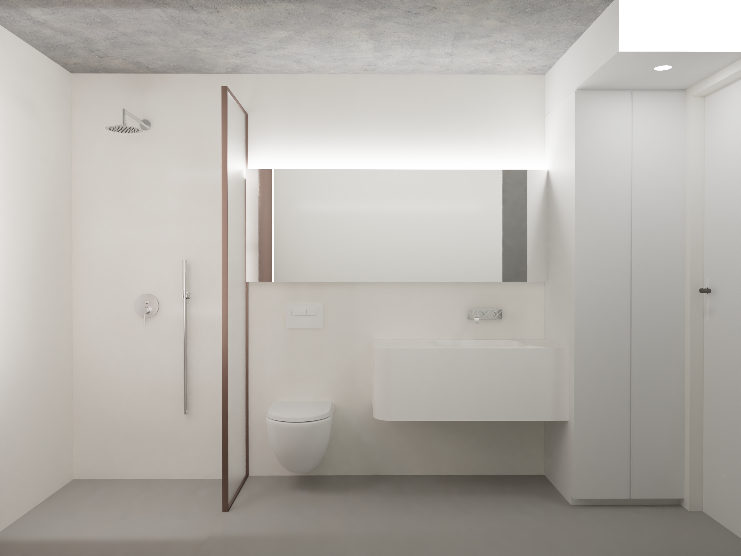 modernist interior shot a luxurious and serene bathroom featuring a glass shower enclosure with soft beige tiles and brass fixtures the bathtub is a pristine white complemented by a sleek gray stone floor the double vanity is adorned with marble countertops and warm natural wood cabinets accented by elegant brass hardware the atmosphere is calm and inviting with abundant natural light filtering through the window casting gentle shadows architecture
