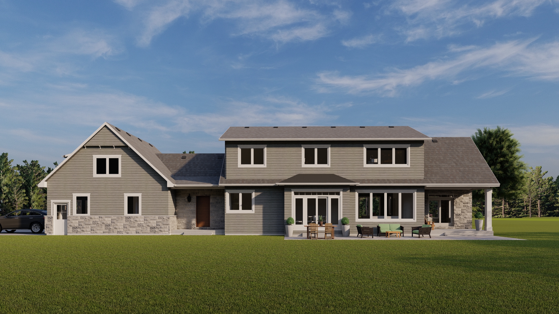 realistic colors shadows and sunlight keep windows transparent with view into house reduce ambient light