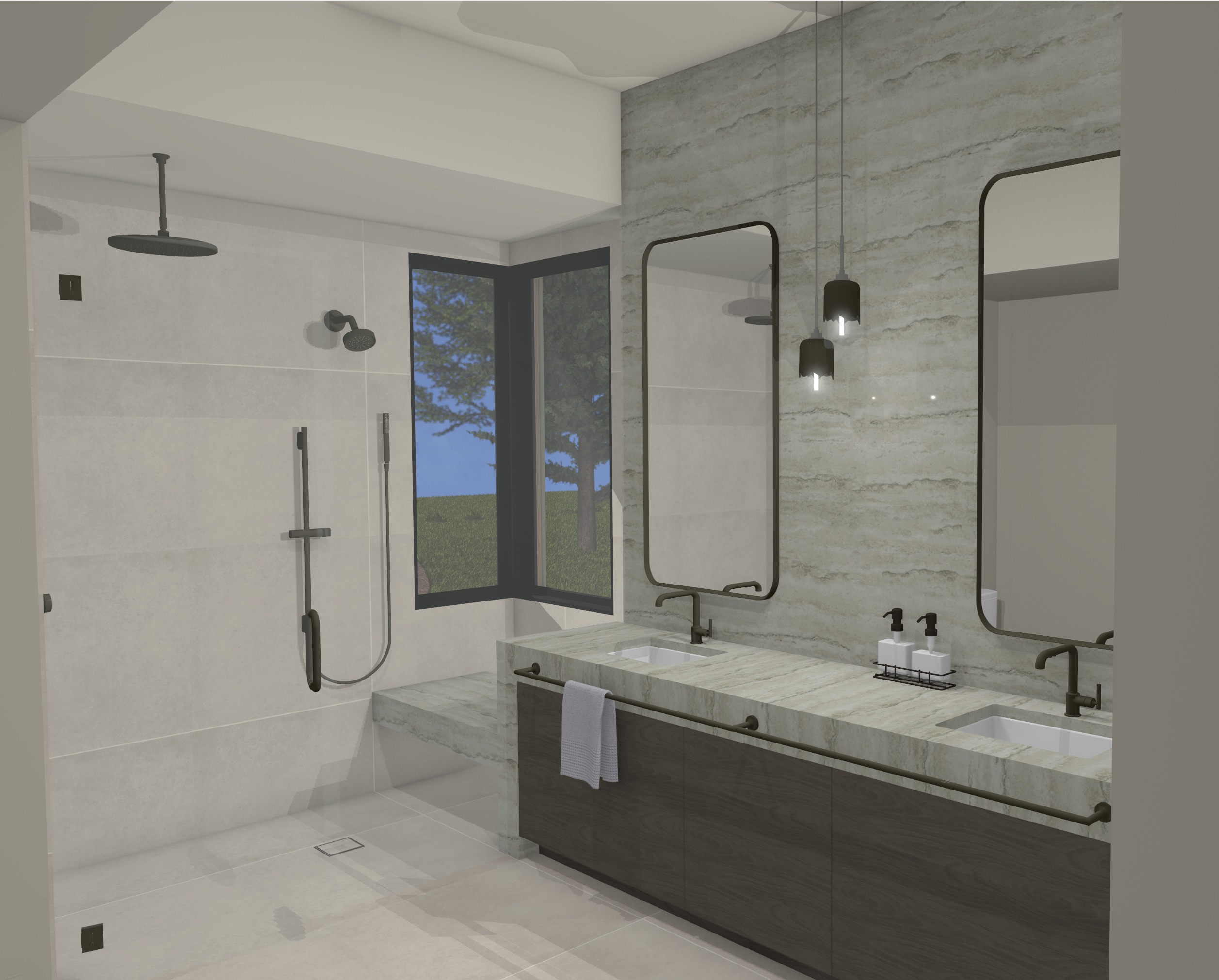 countertop and backsplash is supposed to look like travertine plumbing fixtures are gunmetal