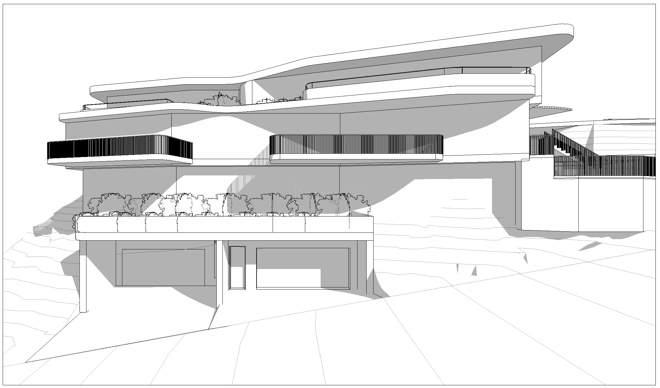 give it a relaxed coastal vibe white walls sandstone cladding to the garage area lots of glazing to the upper two levels lush planting in front of the second level and overhanging above the garage