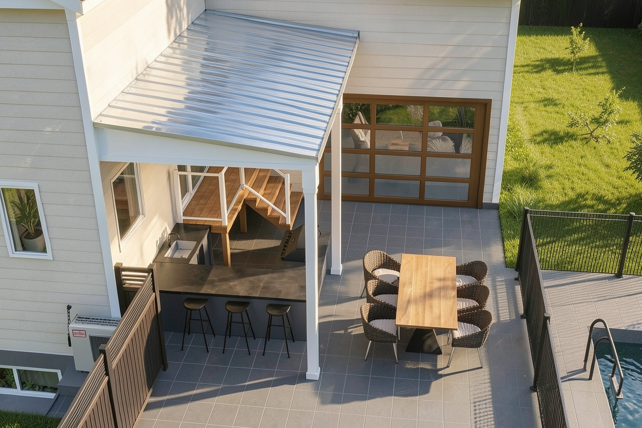 illumina la scena in modo diurno mantieni texture e oggetti invariati parquet a terra nella parte degli uffici colora la parte ribassata ed i relativi pilastri in bianco mantieni il resto del pavimento e del soffitto invariato grigio scuro accendi luci strip led verticale alla fine della boiserie che spara verso l angolo del muro grigio scuro accendi tv