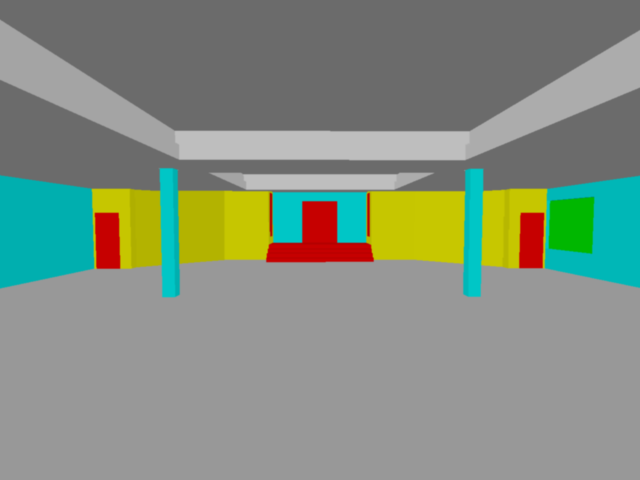 richard rogers interior shot keep perspective as is event room no furniture windows on the far left and far right walls featuring an elegant stage with 3 steps atmospheric backlight the room lighted with elegant artificial light all finishes in neitral tones simliar to white alabaster architecture