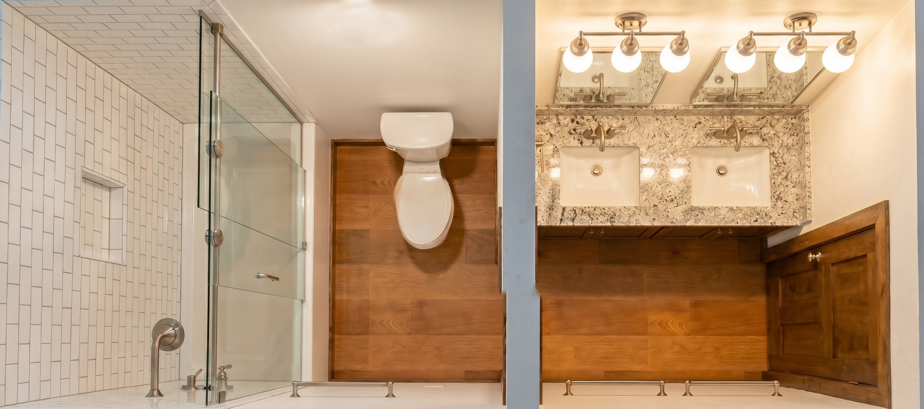 keep everything the same add an 8 inch hand towel bar above the sinks