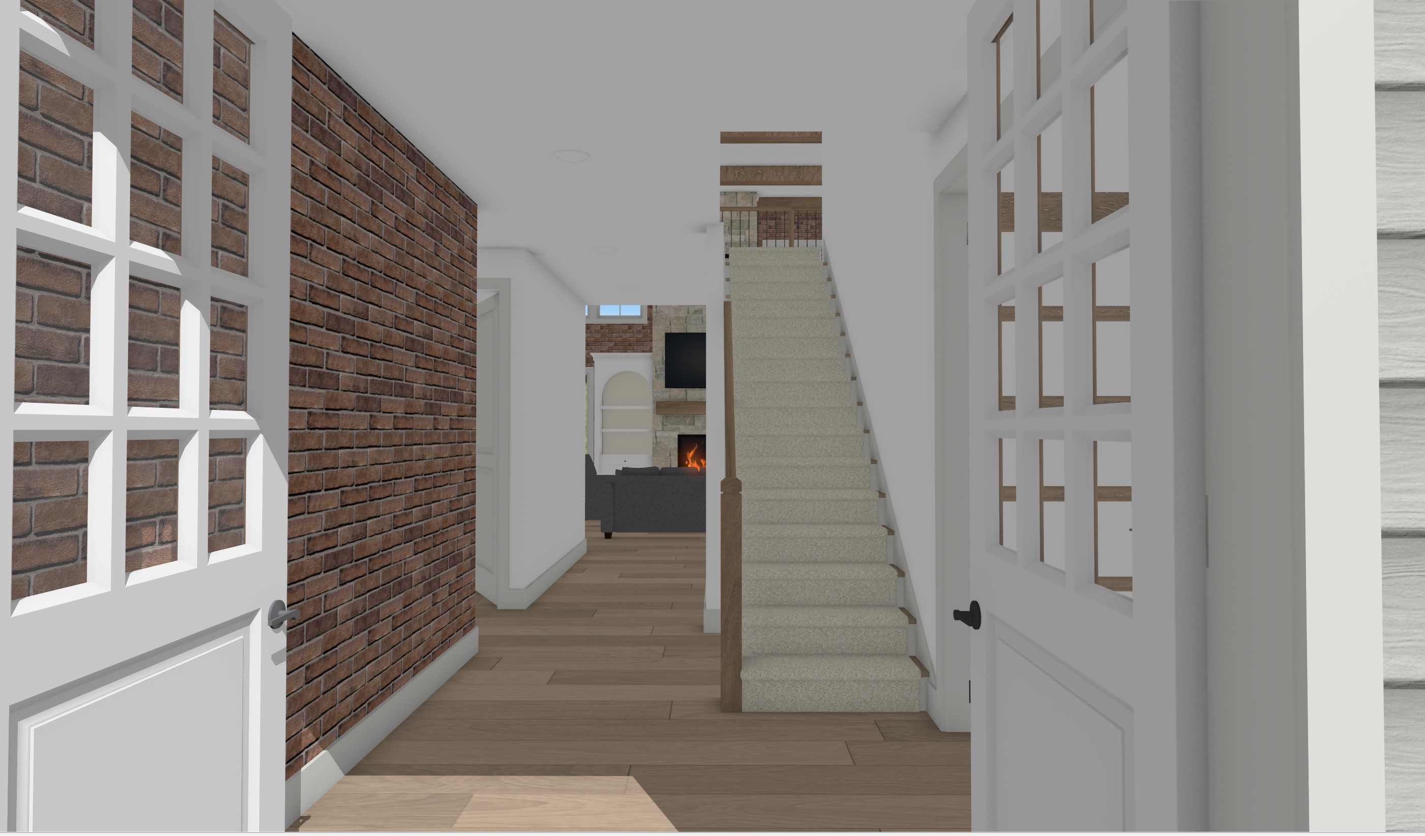 make this image a photograph make this a welcoming foyer entryway and staricase