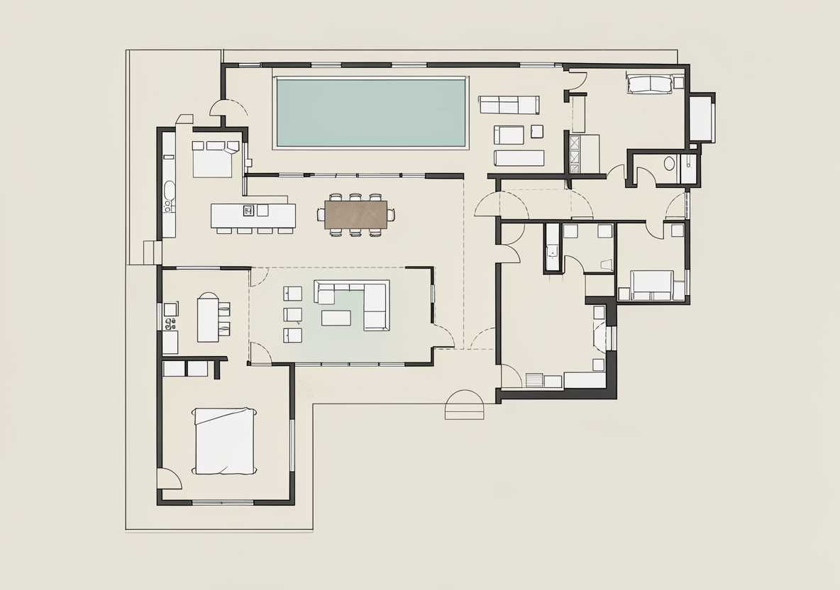 modern exterior shot grey concrete tile roof south florida landscape afternoon lighting large format tile on verical columns white stucco field black front door and garage door architecture