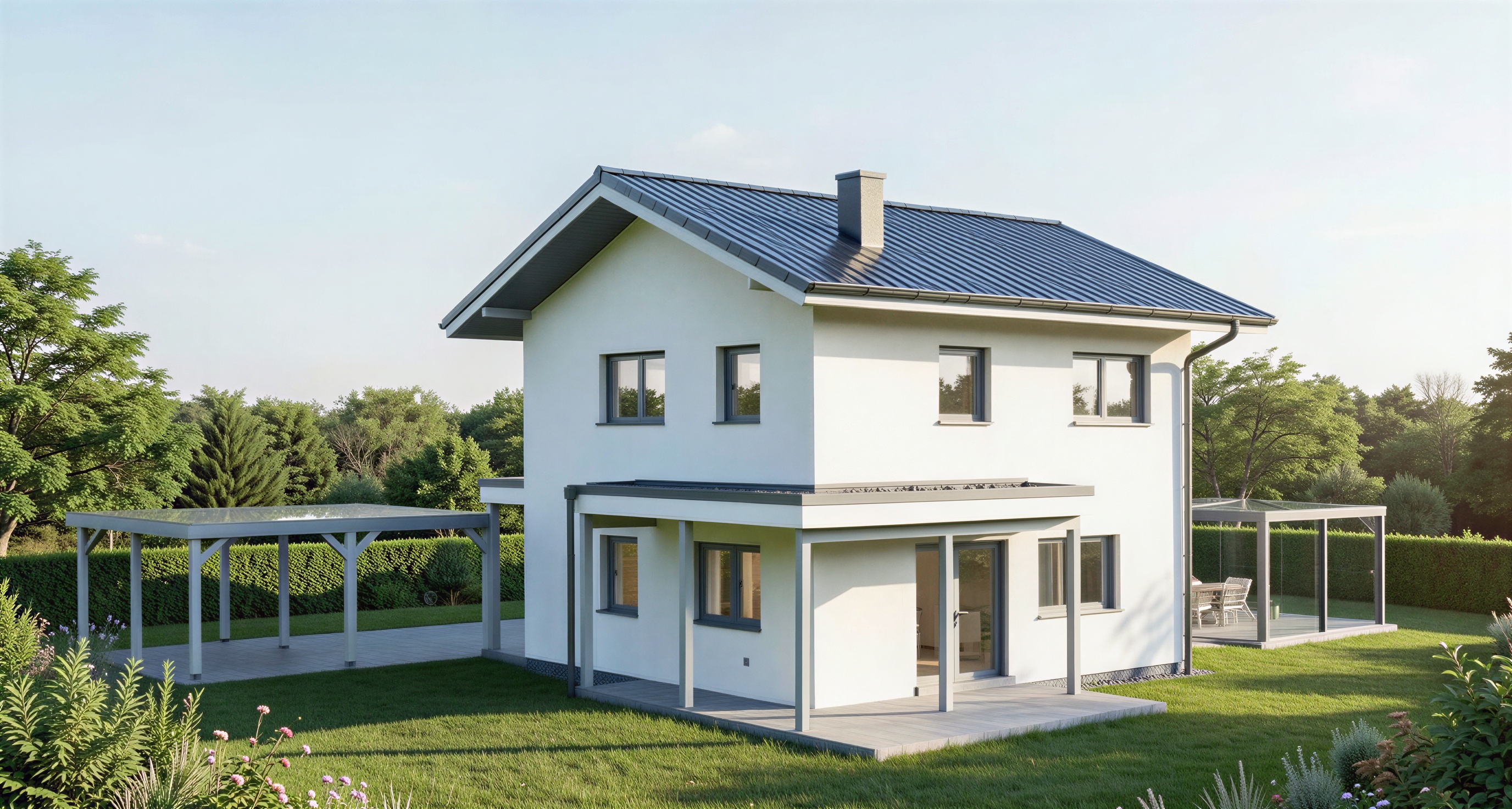 entferne die pergola rechts neben dem haus behalte den rest exact so bei