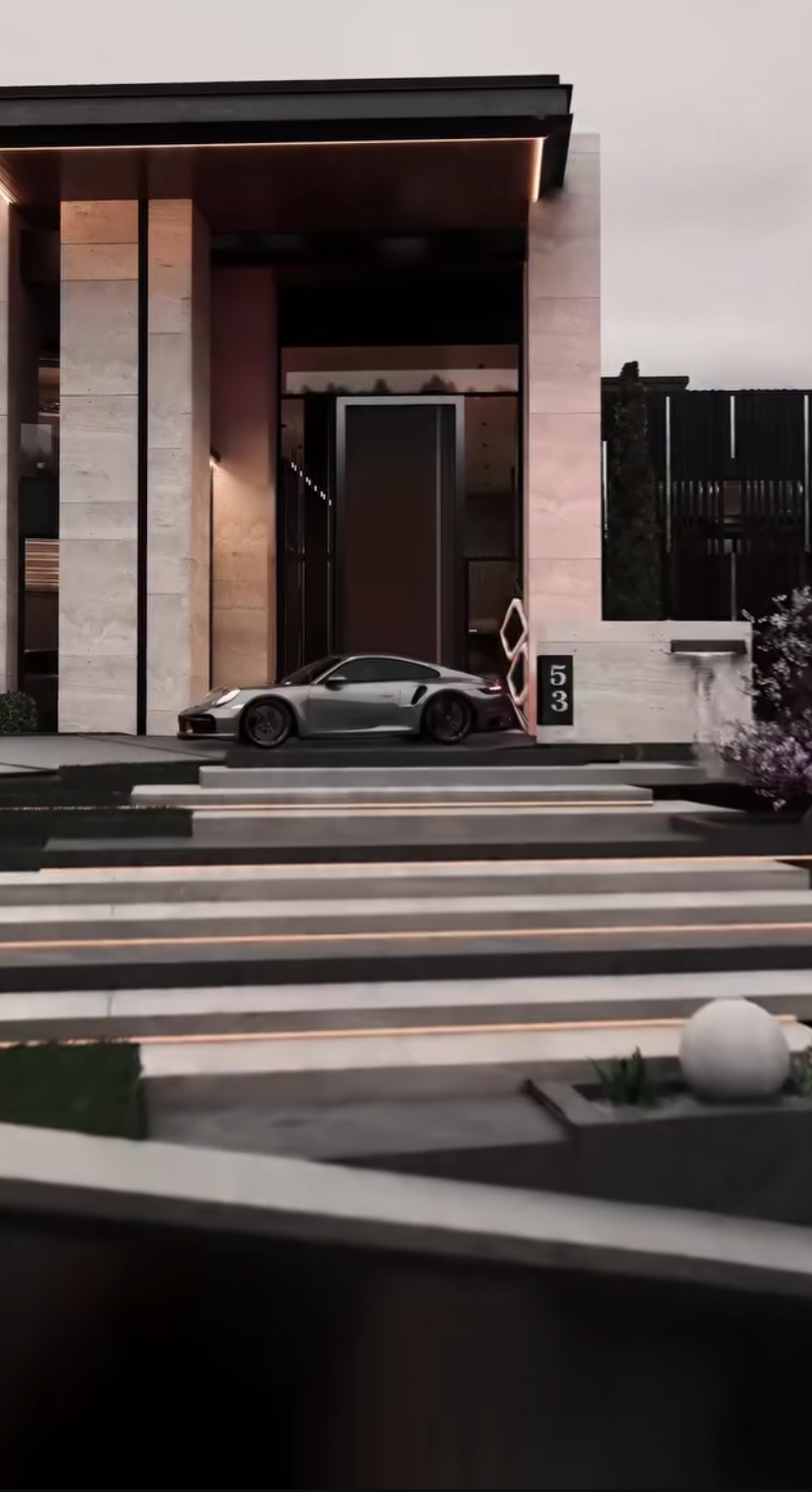 make a slight l shaped home with a glass garage beautiful small roundabout driveway to street with iraq architecture details
