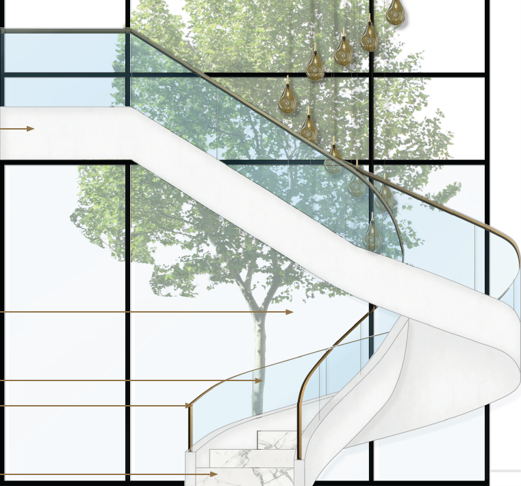 render this staircase with a cool modern blackmetal balustrade