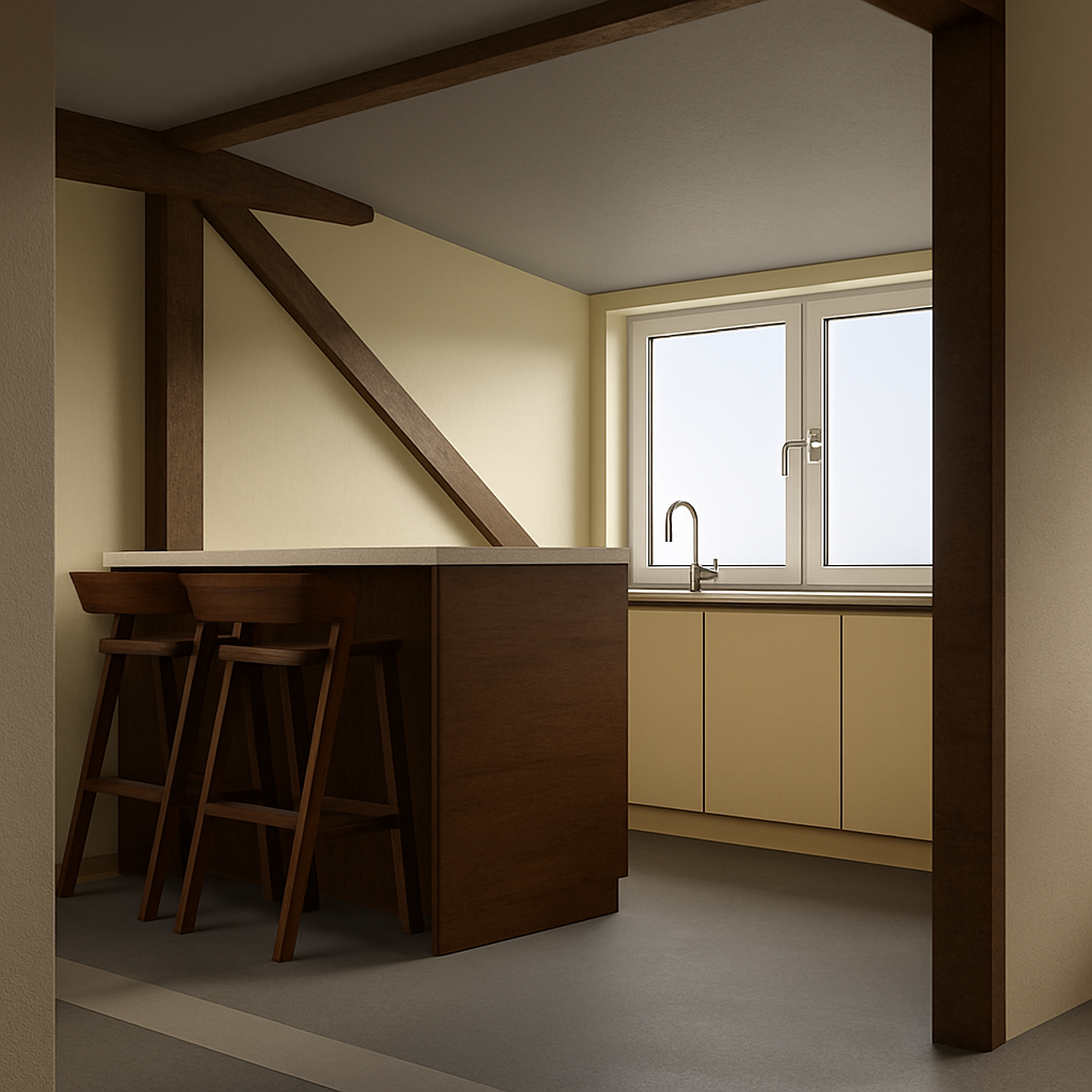make night time with fixtures lit up blue light on that s on the side table and the floor lamp turned on orange room slightly lit up