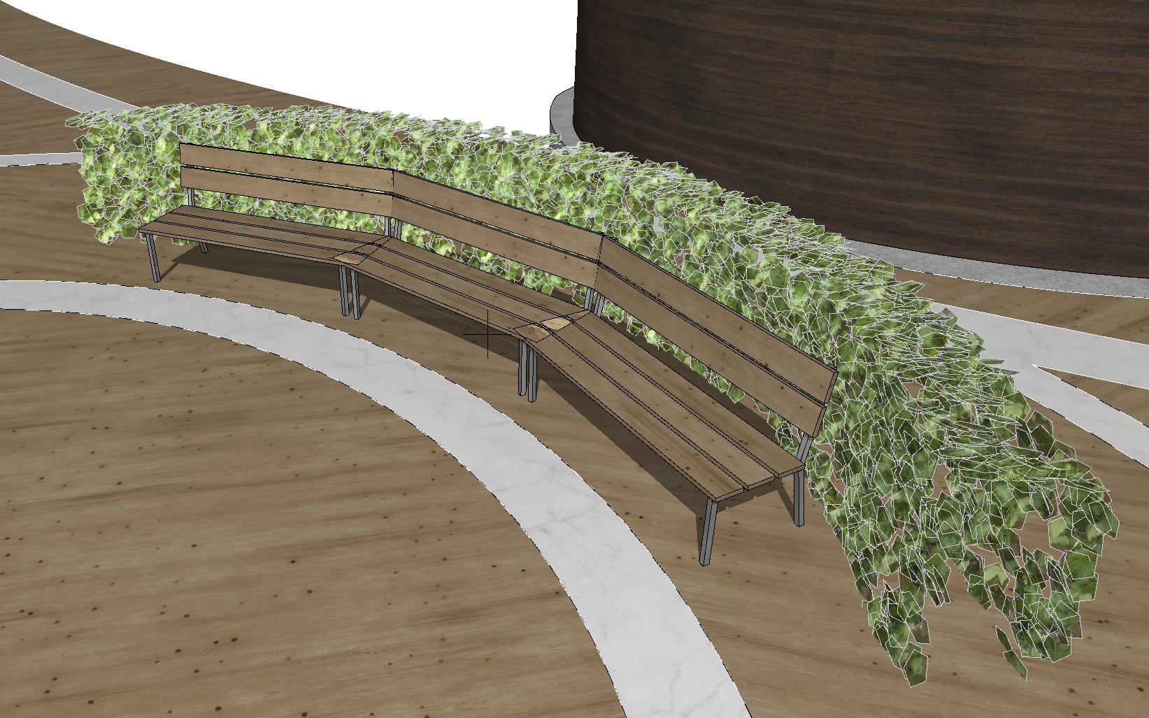padaryk grazu apvalu suoliuka su tujomis uz nugaros