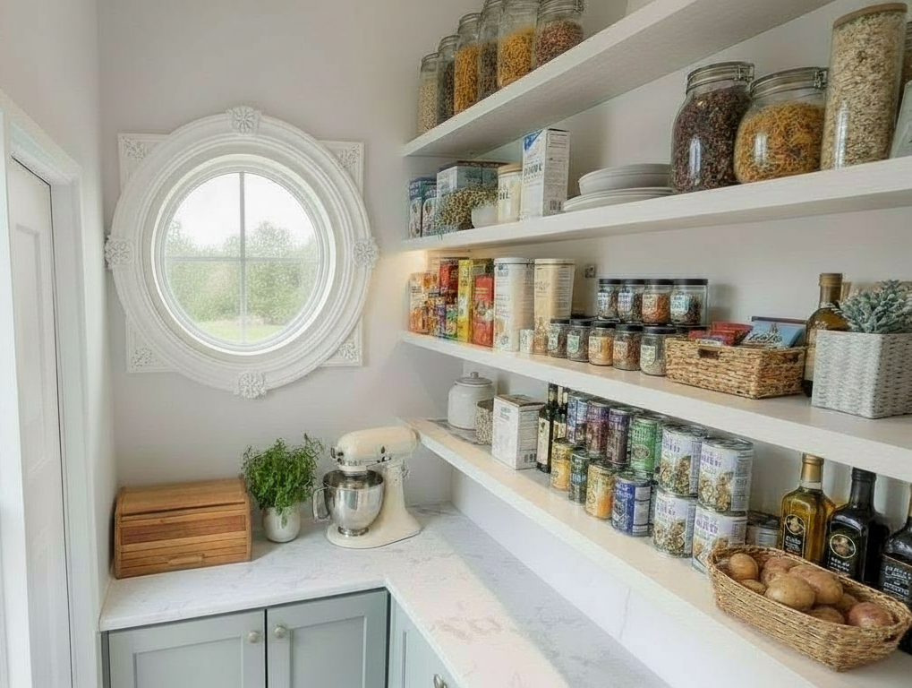 put a frosted glass pantry door on the left wall