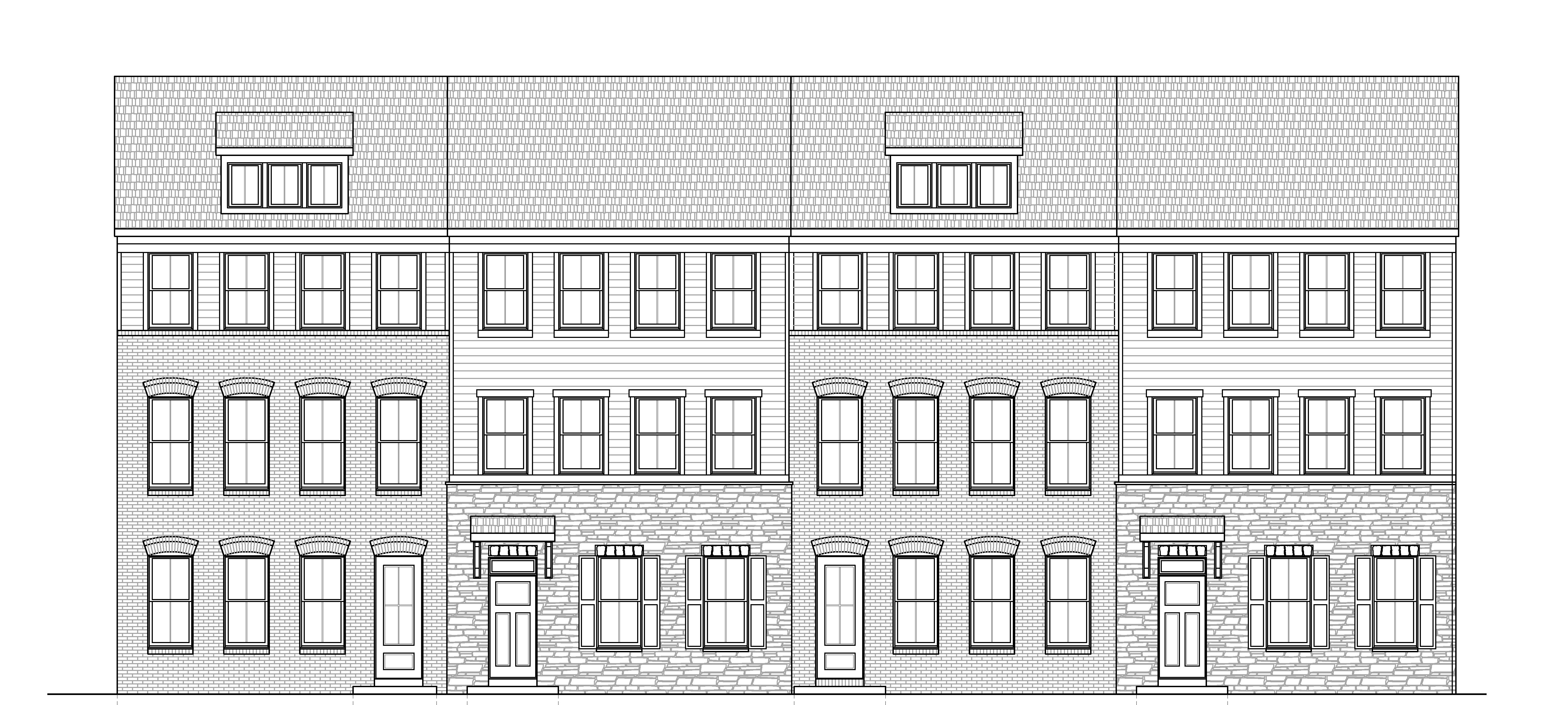 modernist exterior shot render townhomes exactly as shown in the image on a reasonably sunny day architecture