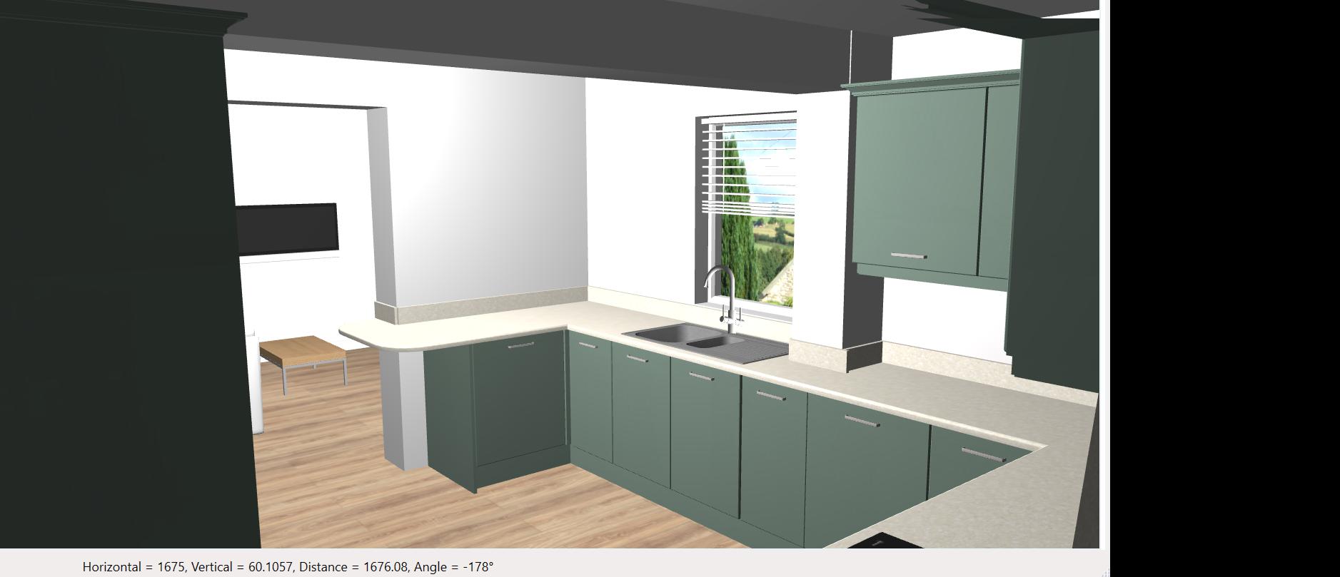 add lighting and double sockets worktop to be in a light marble quartz