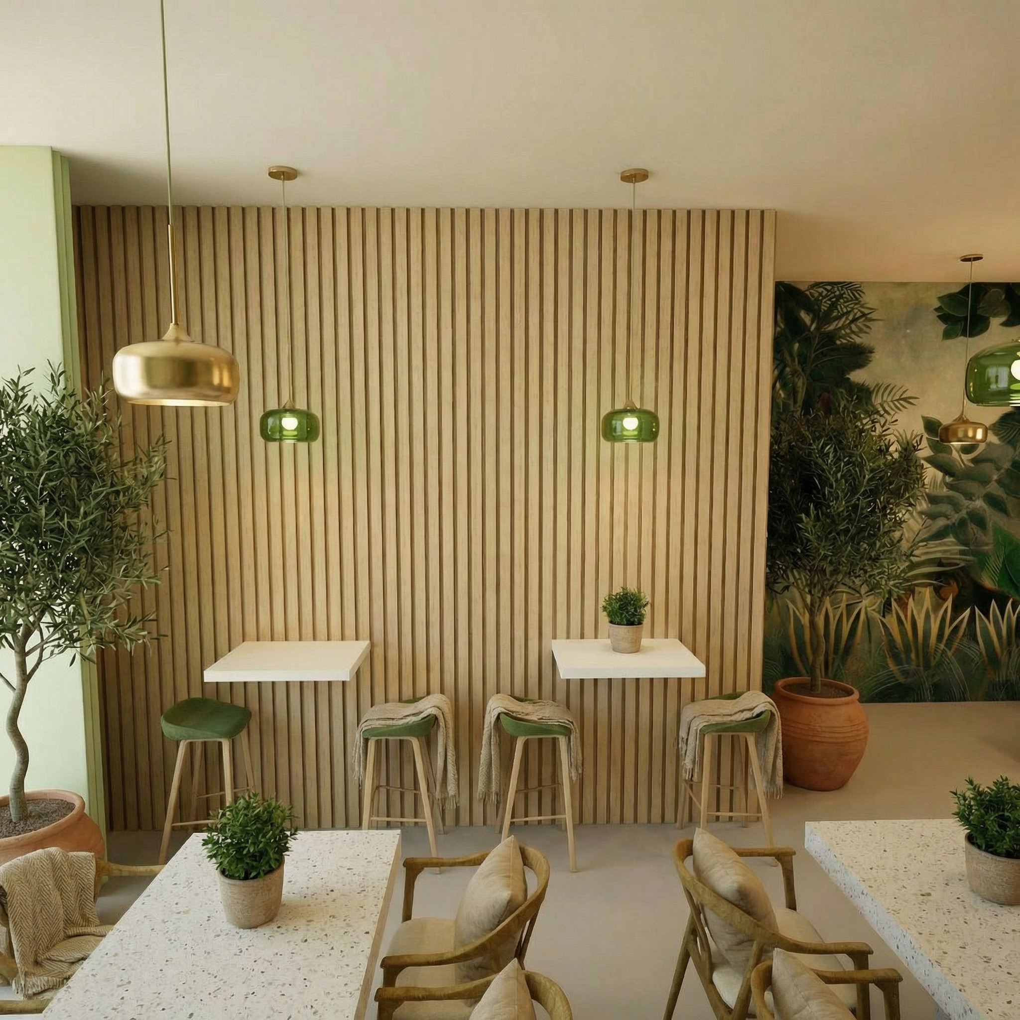 create two vertical wooden strips one on each table and not wood covering the entire wall like in the photo