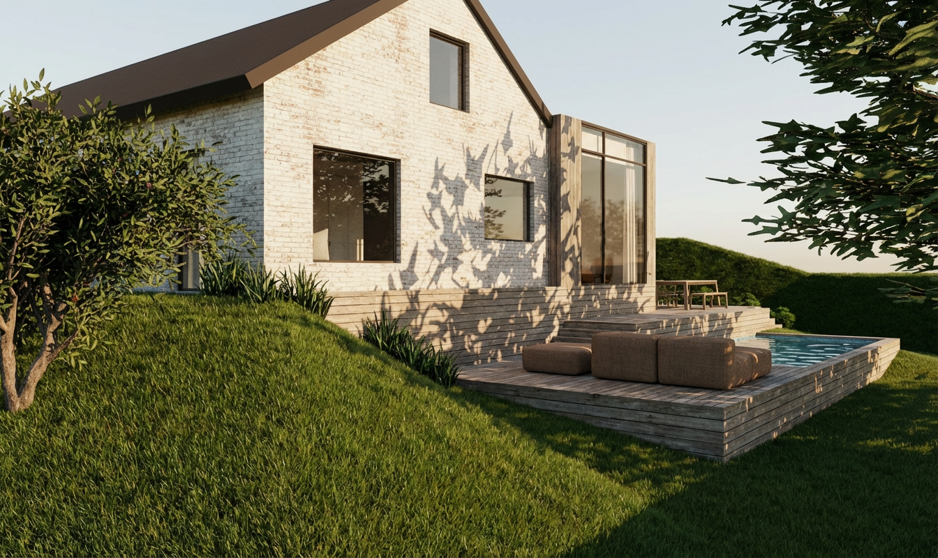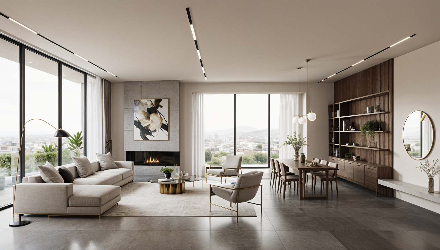 the black squares in the background are blue each individual square in the background consists primarily of blue with purple pink and orange tones the shadows are black the vertical led lines in the background emit an orange light the entire image is more saturated the led lines under the desk have a warm glow the ceiling remains black vibrant colors highly saturated high contrast the color of the desk will be retained increase color saturation enhance contrast make the colors more vibrant while maintaining the architectural forms