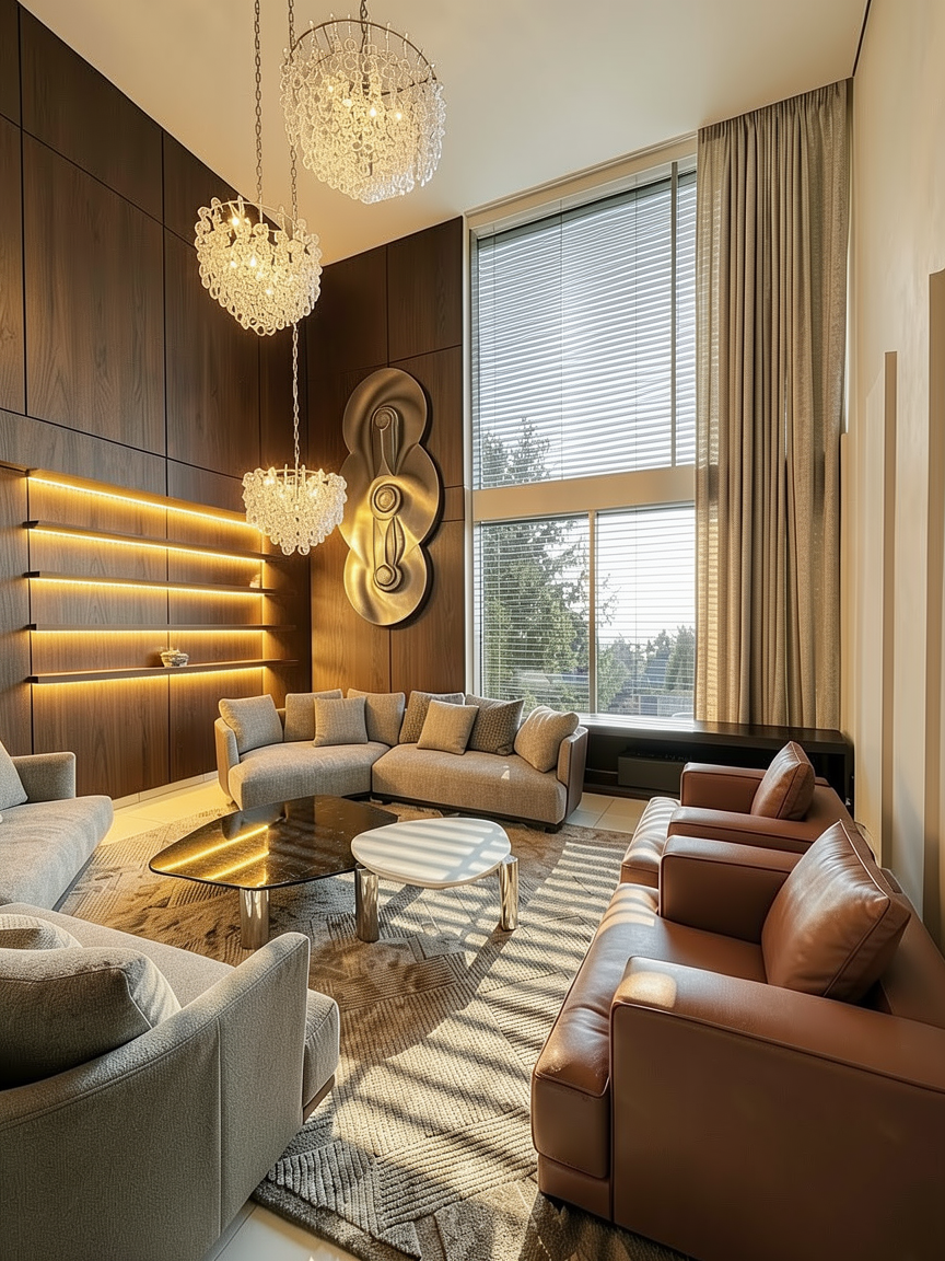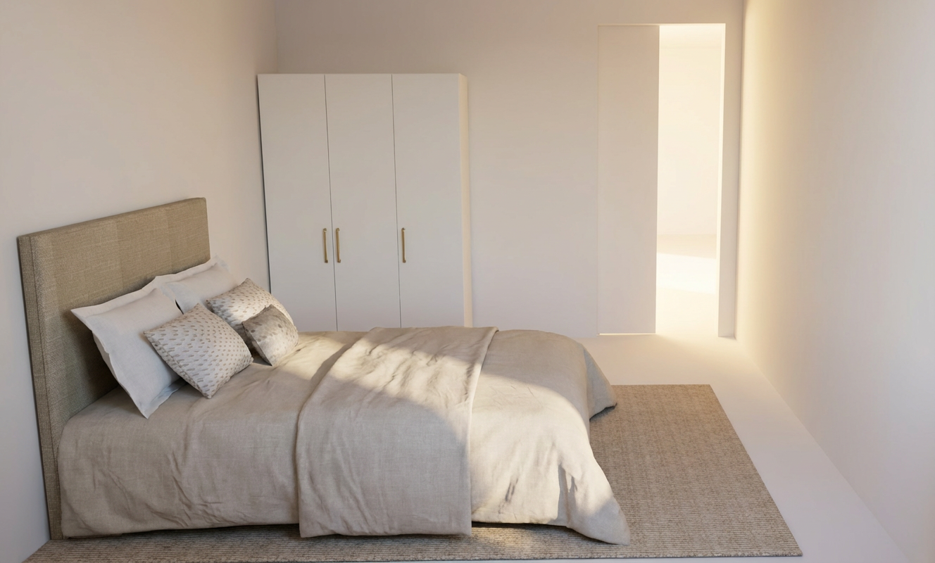 keep the entire image exactly as it is no changes to furniture kitchen walls floor ceiling windows lamps or any other objects only improve the realism light shadows materials and perspective should appear more natural and realistic without altering the arrangement proportions or colors of the existing elements