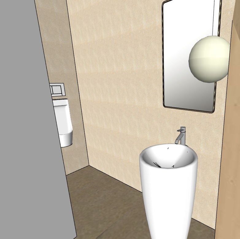 on the wall there are light beige brown tiles and on the floor there are light cream beige tiles wall on the left is light grey