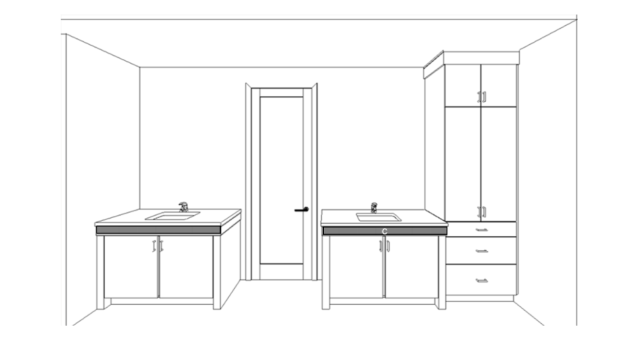 light stained oak floors alder wood on vanities with light brown stain white walls in chantilly lace white marble countertops with grey veining rubbed brass hardware rectangular mirrors over sinks gold and glass sconces large scale floor tile in neiutral color