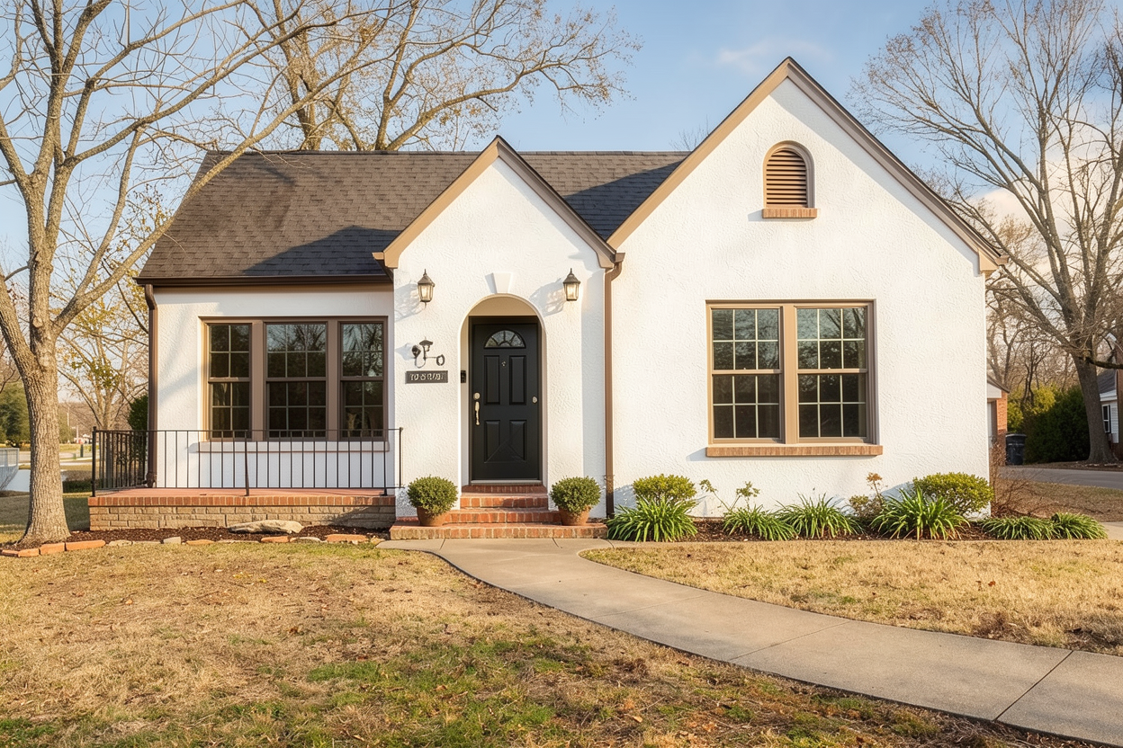 update exterior to german smear brick and black door