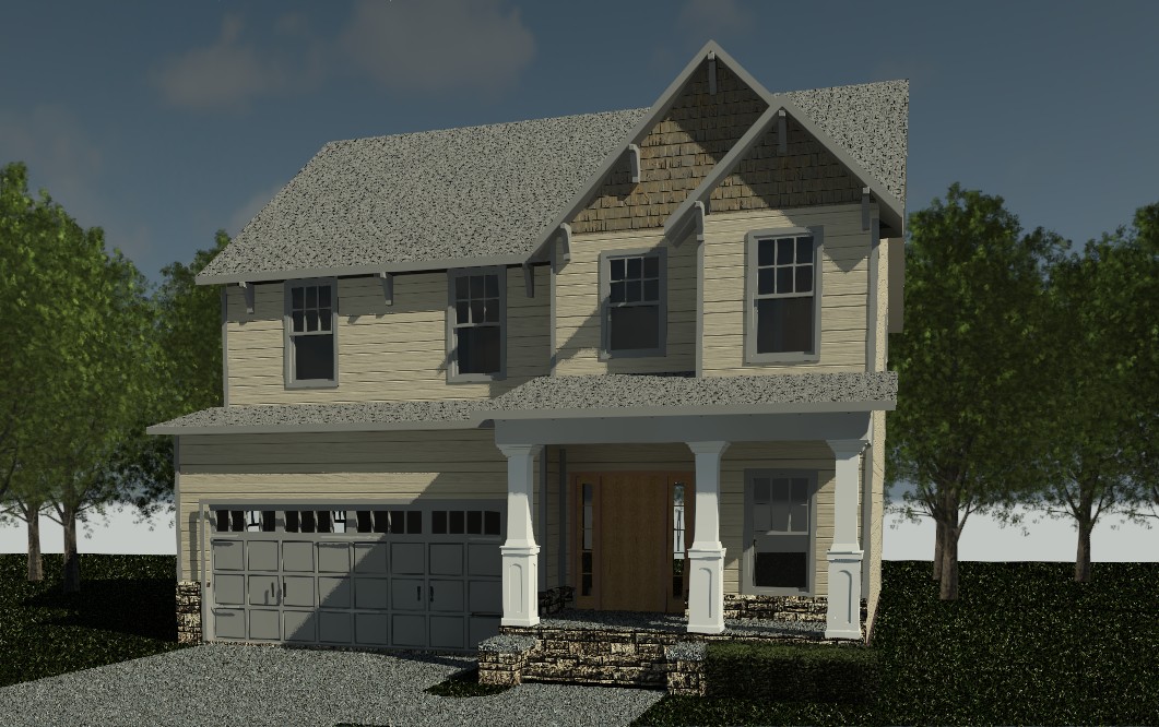 new urbanism exterior shot a white ranch style house with a black roof in a green area surrounded by trees architecture