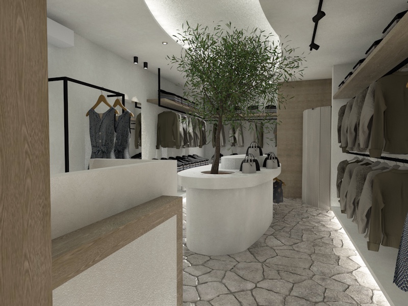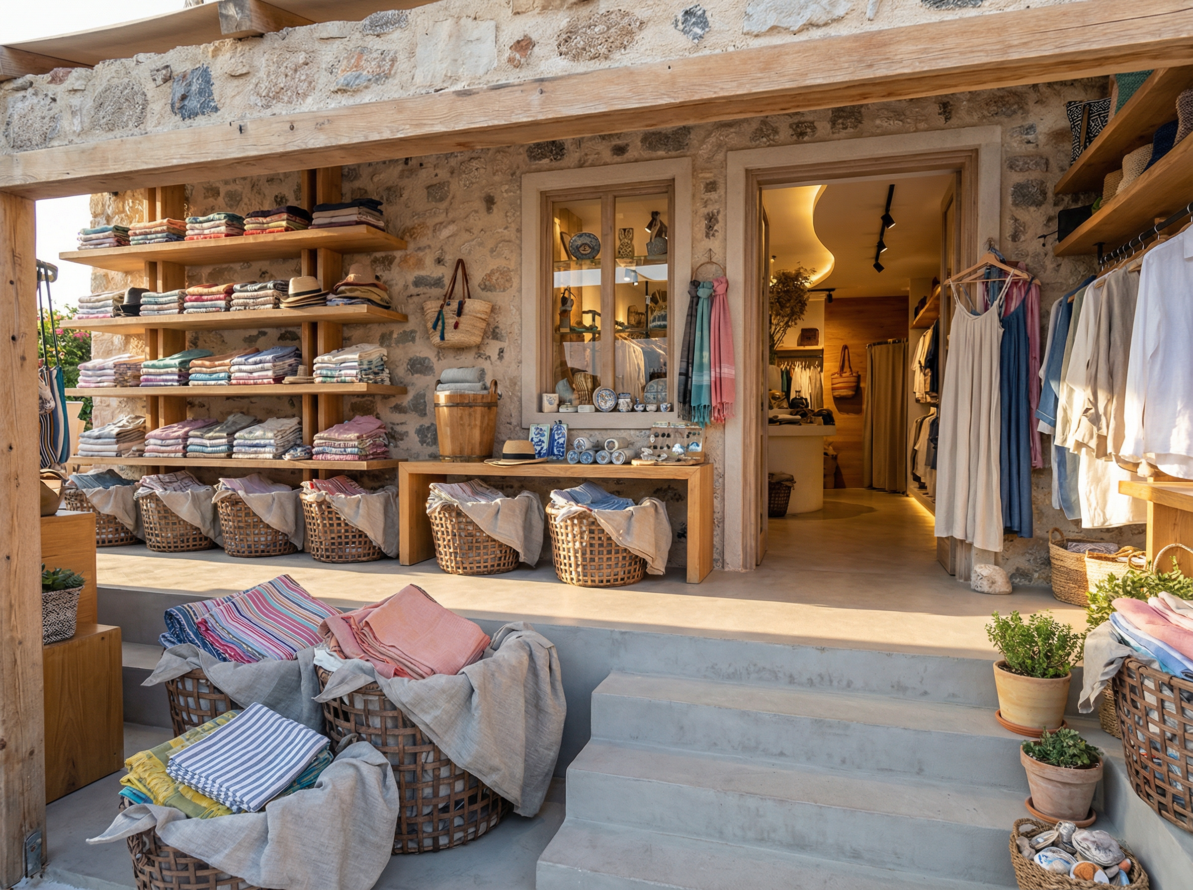 touristic shop exterior with natural colors add touristic things for sell and clothes and decor