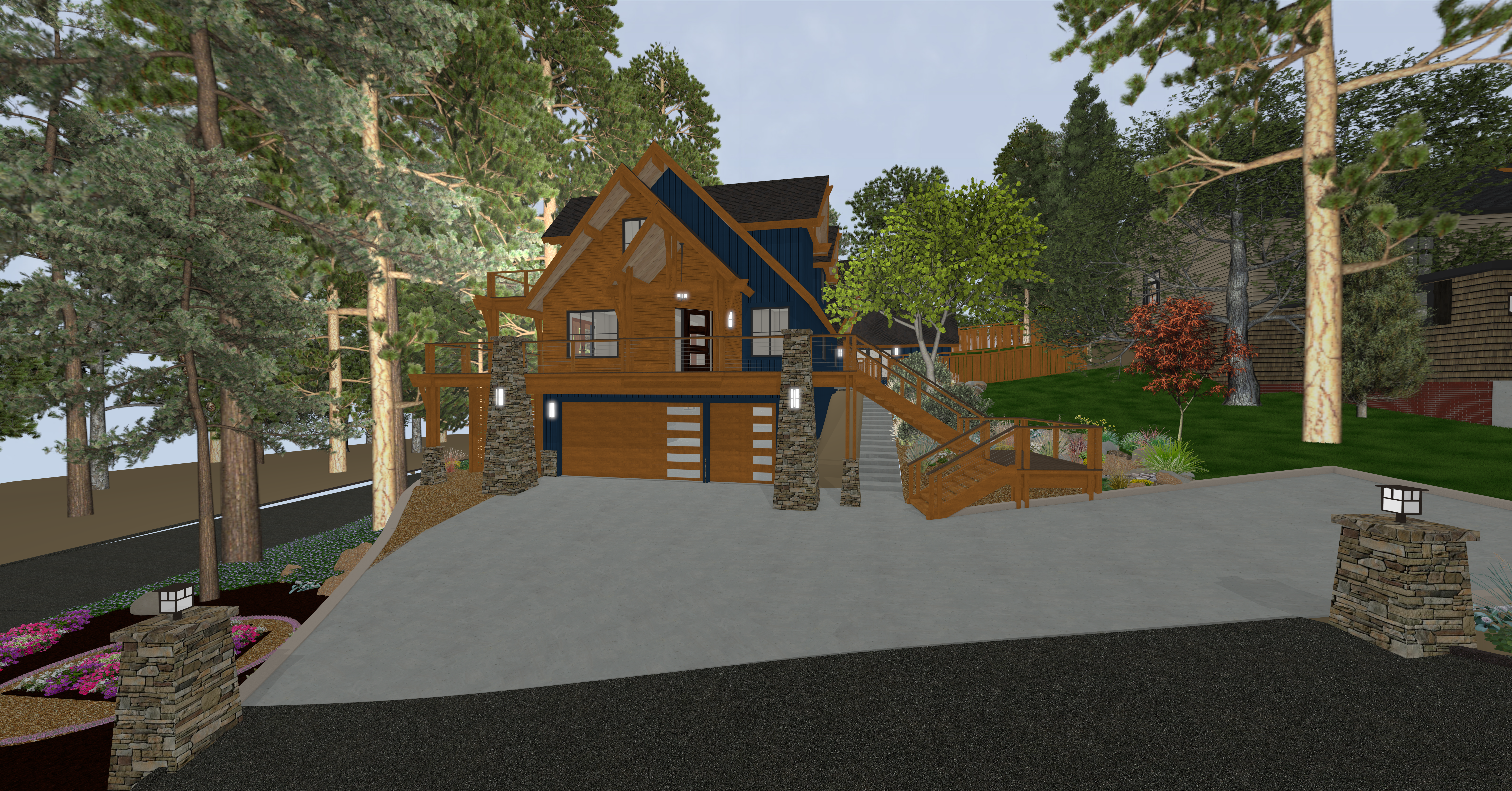this contemporary mountain residence features navy blue batten and board siding complemented by natural cedar timber framing and horizontal siding accents black window frames and stone detailing further enhance its sophisticated architectural design