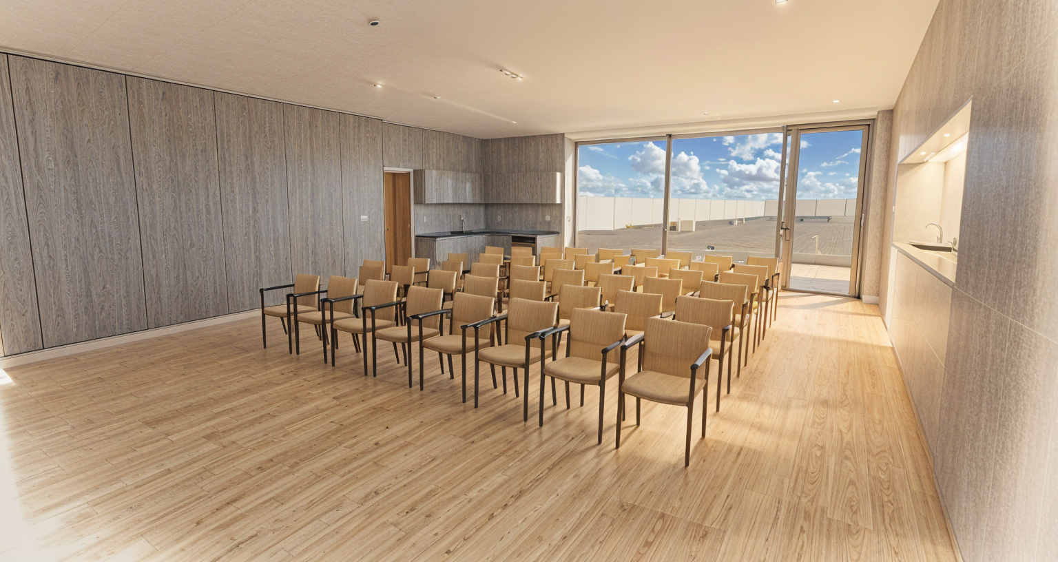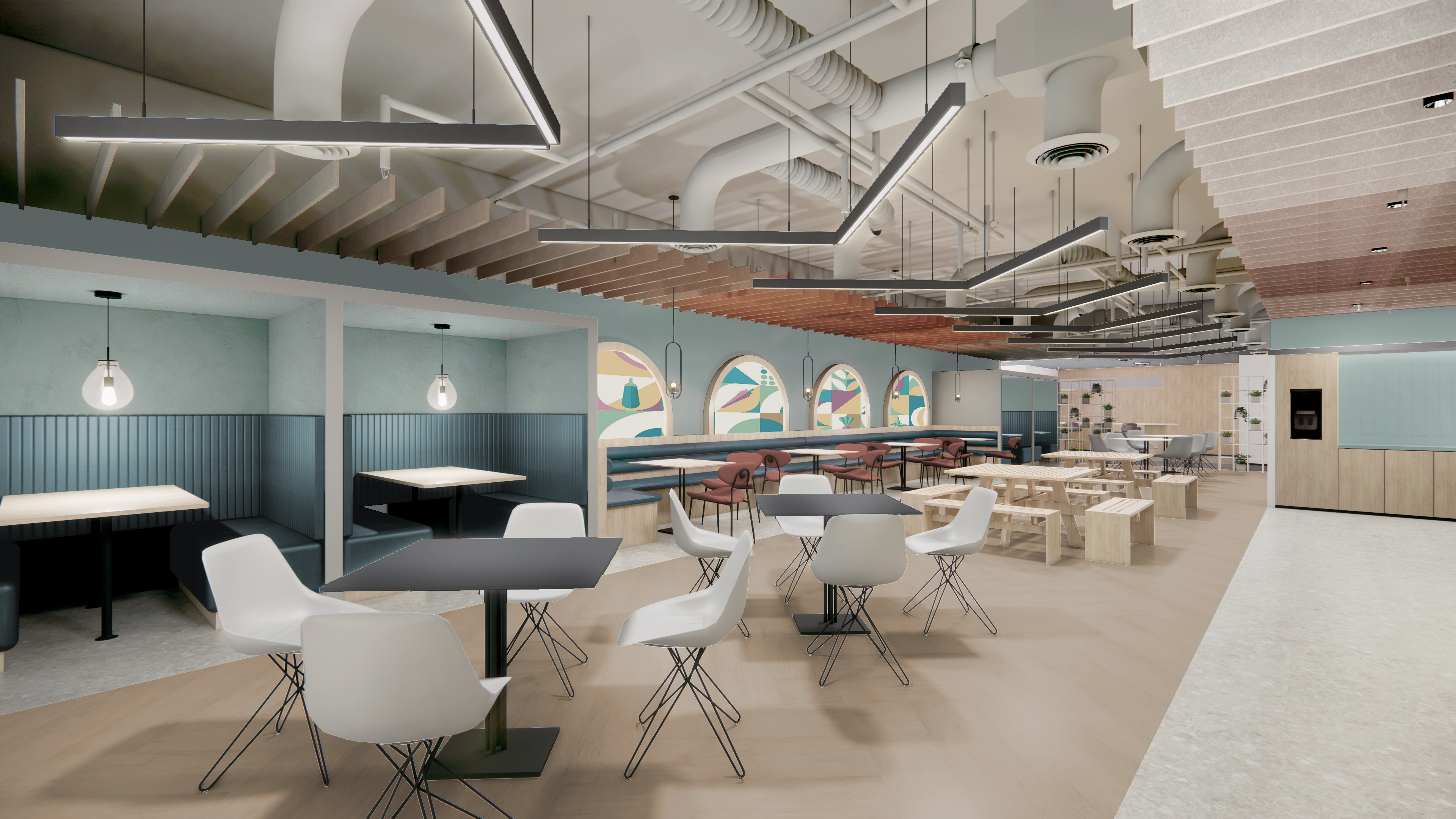 make the lighting more realistic but keep the integrity of the forms colors materials adhere strictly to the elements in this render and only enhance the quality of the lighting architecture