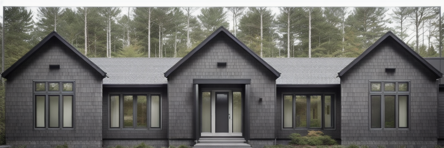 render to a 3d image with linen color vinyl siding and a front door with sidelites brown shutters and natural wood porch beams
