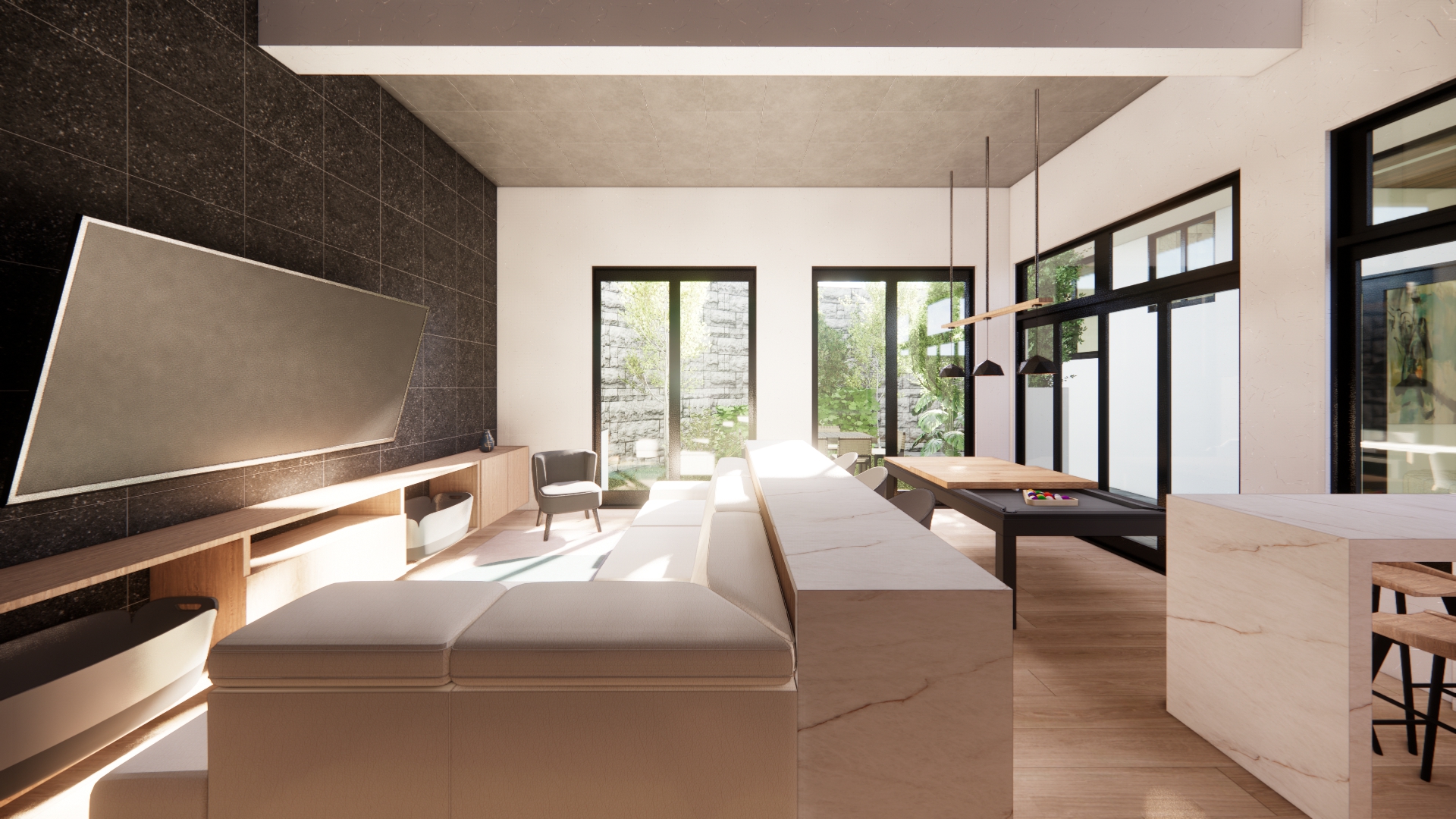 improves textures without changing spatial distribution improves black lighting on the ceiling the walls and ceiling should be white without texture respect the colors the background wall is rough black porcelain