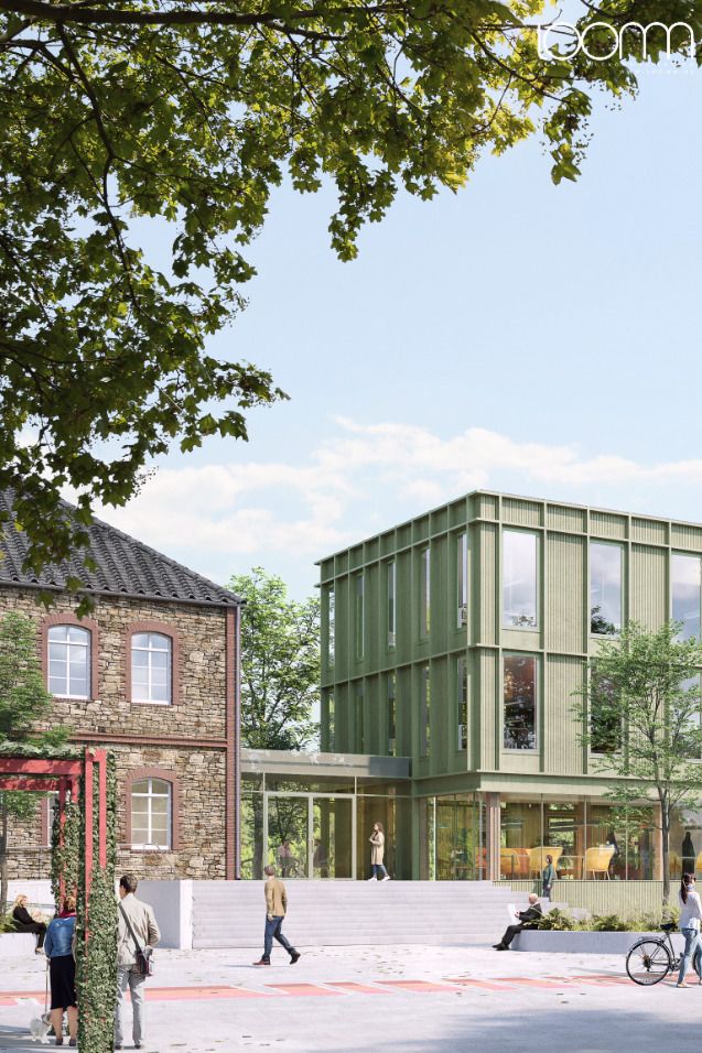 exterior shot a realistic depiction of the original building staying true to its architecture and details bathed in soft golden morning light with long shadows a calm and serene early morning atmosphere children joyfully playing in the foreground natural colors highly detailed realistic photography style ar 16 9 iw 2
