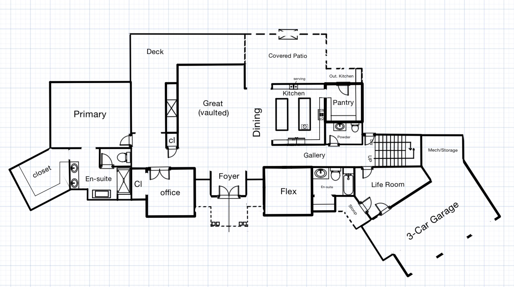 show floor plan sketch as an architectural hand rendering add wall thickness and doors as shown