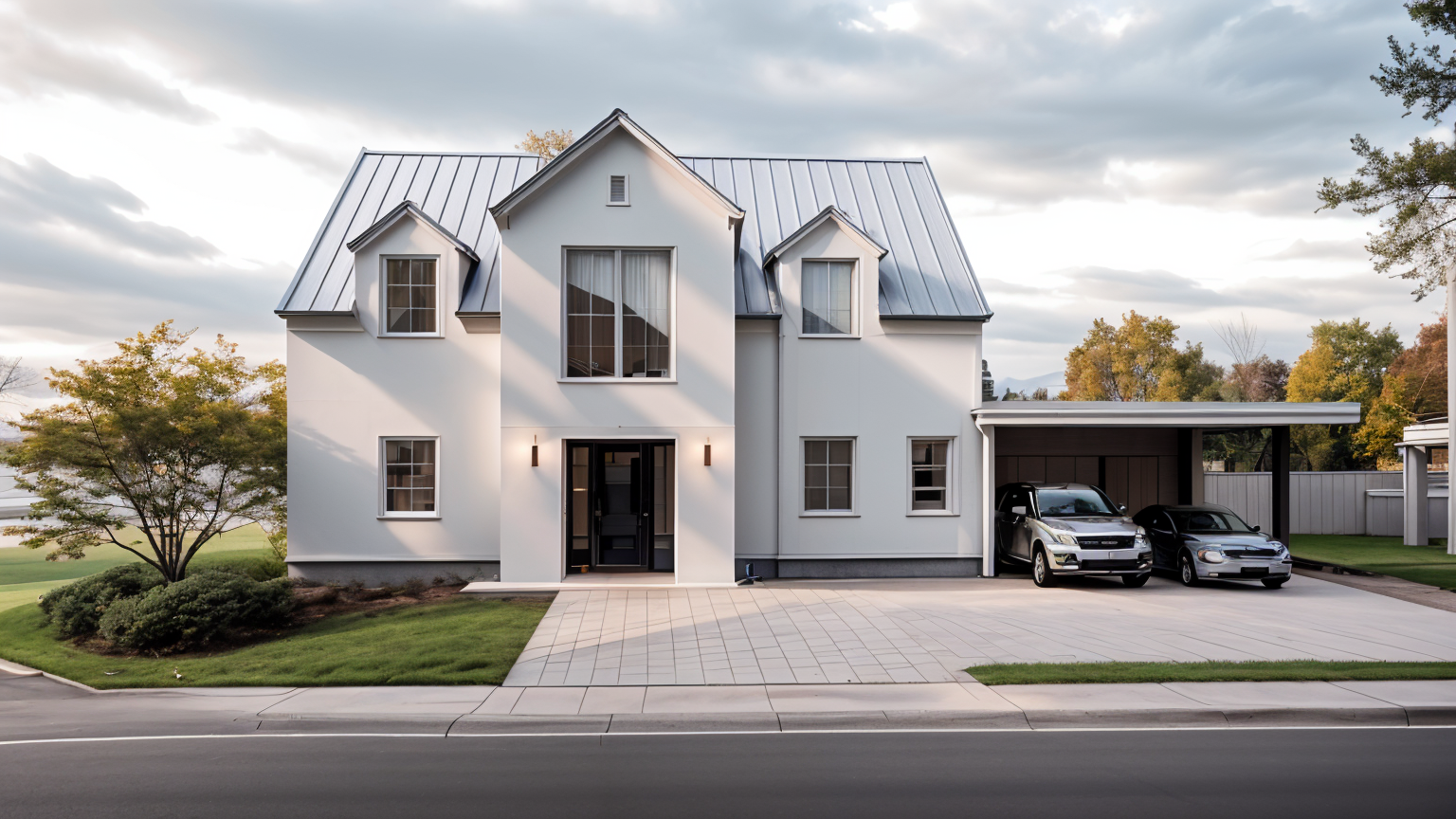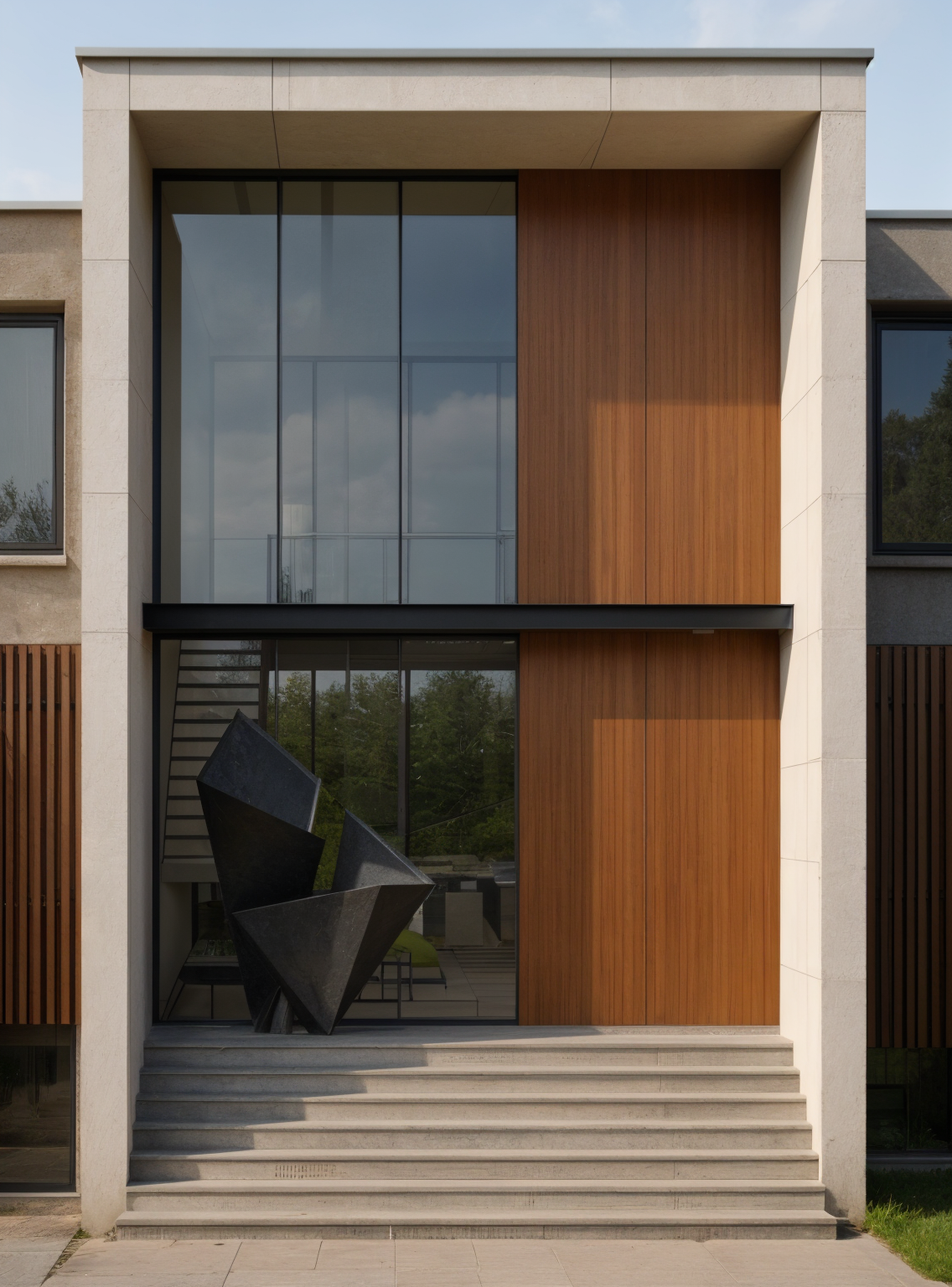 create a photorealistic render of a modern l shaped kitchen with an integrated peninsula maintain the exact colors and materials from the reference image matte dark green base and tall cabinets vertical wooden accents beige travertine like backsplash and black metal details include the small plants open shelves and pendant lighting above the peninsula use natural warm lighting as if illuminated by the late afternoon sun coming from the left large window side the mood should feel cozy and elegant with soft shadows and subtle reflections architecture