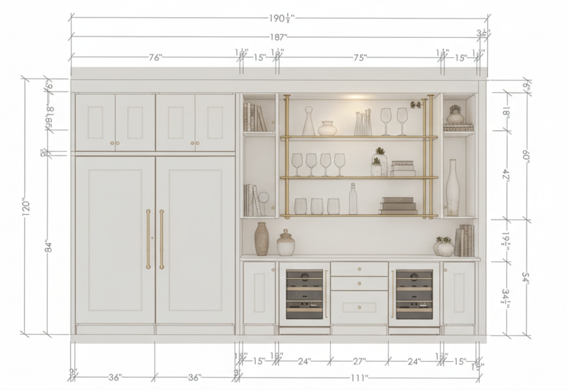the gold shelf between the cabinets is just about 72 wide i d like the shelf to be 54 wide and centered between the two cabinets