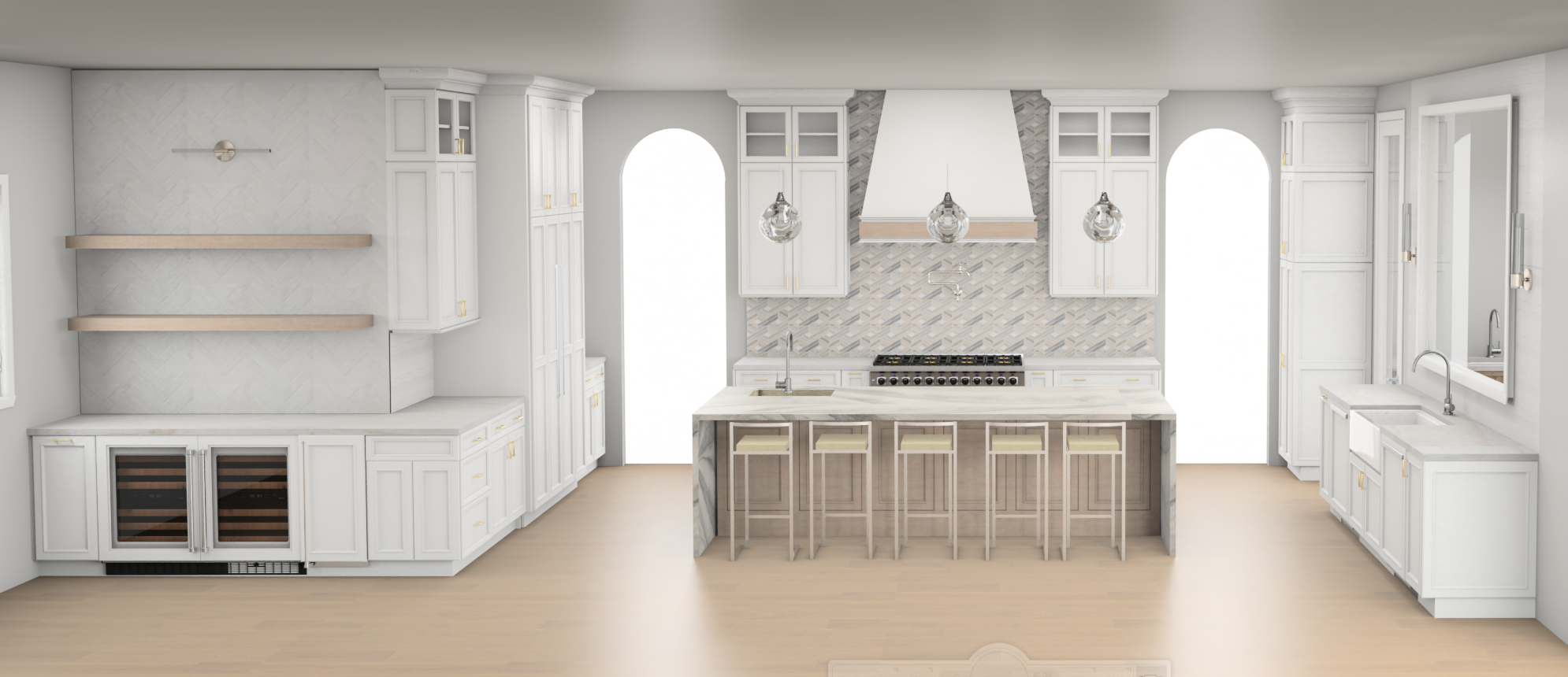 change the arched doors to opening to a hallway