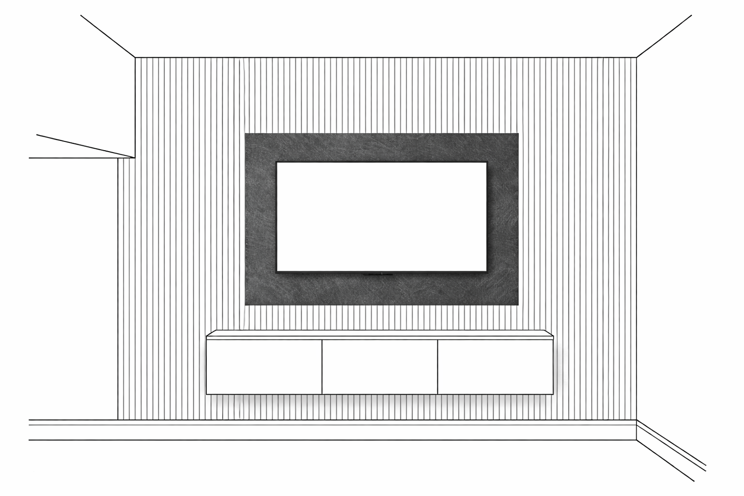 tv unit is white slatted panes oak colout and board behind tv make to match and look profesional
