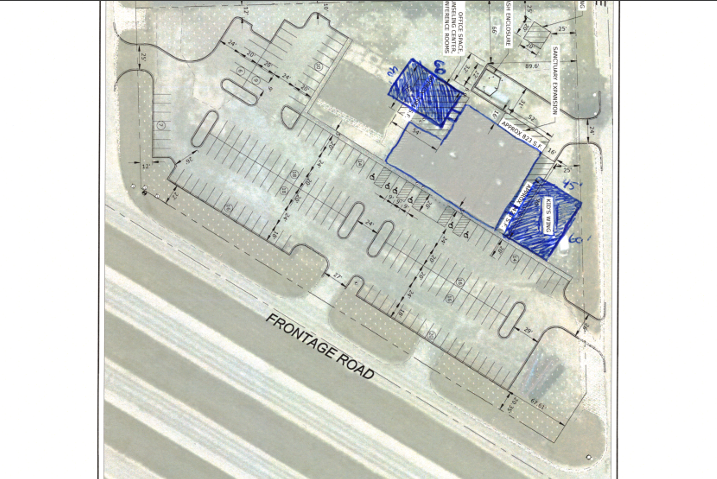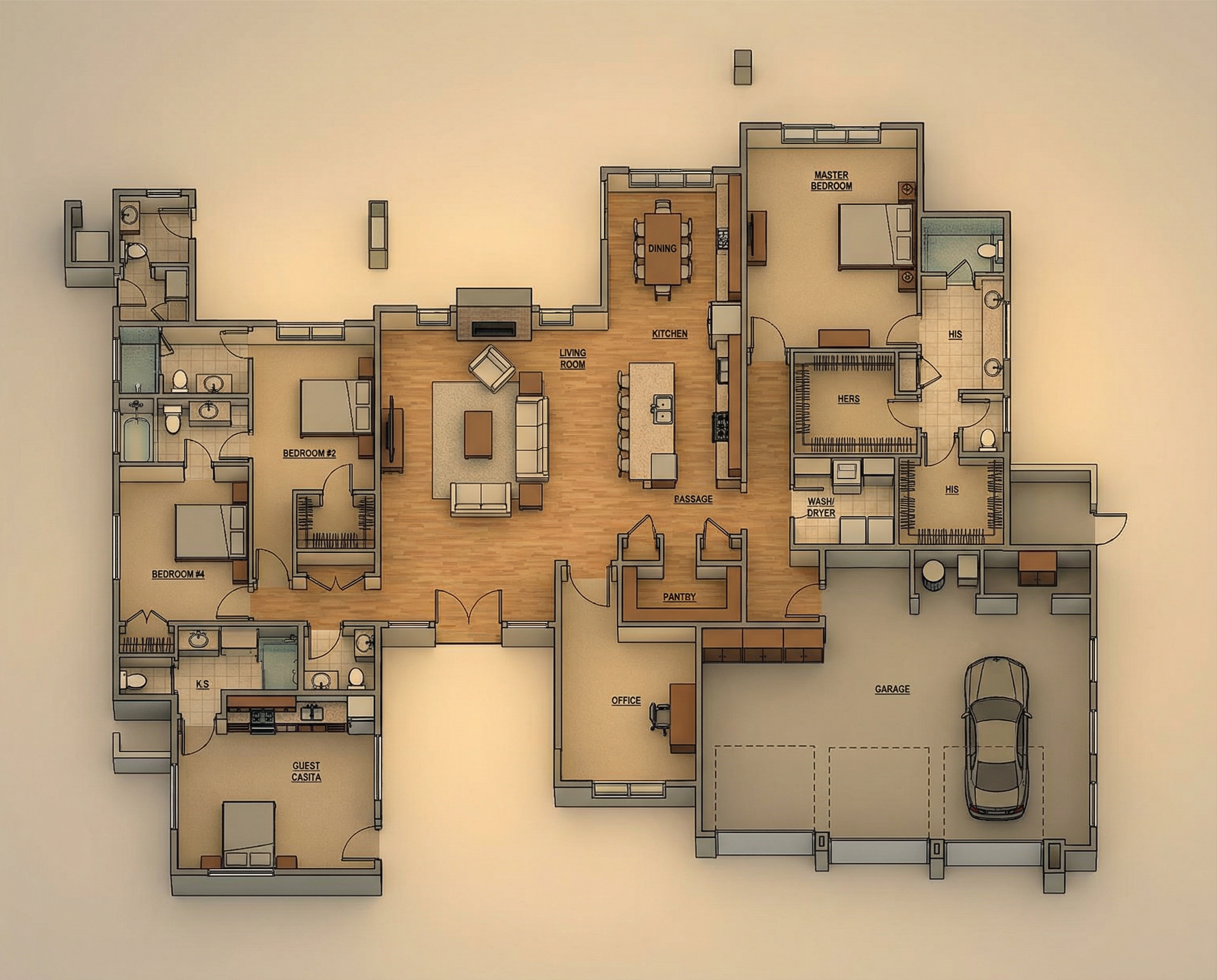 exterior shot transform this overhead aerial design into a 3d rendering of a parking lot