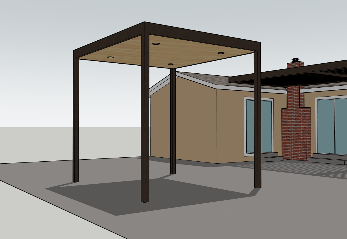 make this more realistic with the aluminum patio cover frame add cedar wood panels ceiling inside take off the bolts that s holding it in the ground