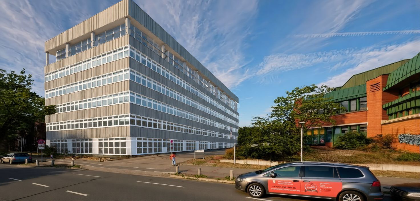 change the grey facade parts of the building to this green zick zack profile fassade
