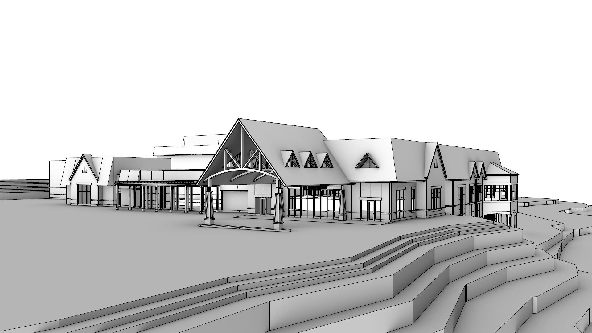 stone wood facade with glass accents in the woods mix of contemporary modern and estate catering hall grandeur