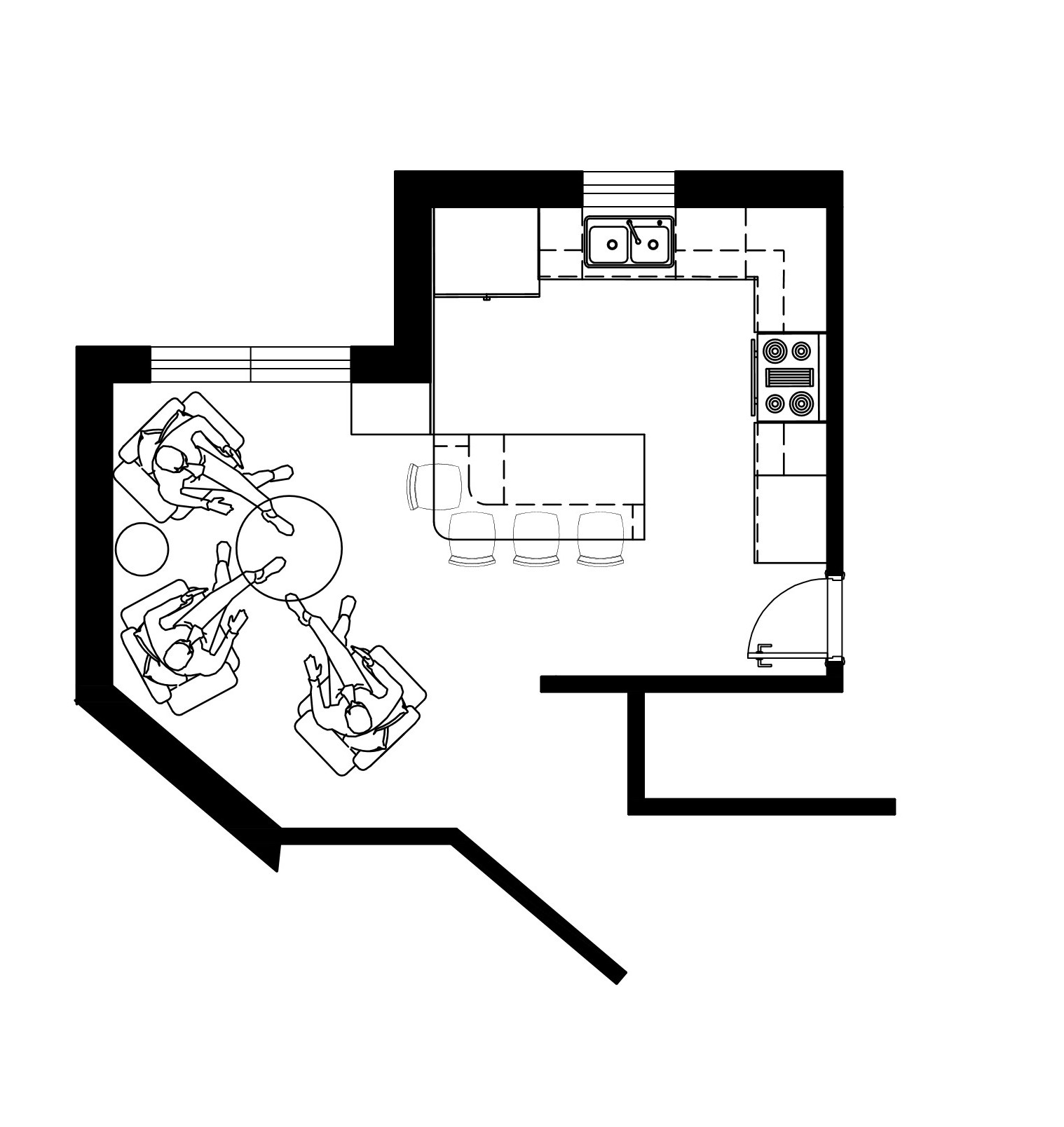 convert this floor plan into a realistic isometric 3d view of a full house show the space from an elevated angle with furniture walls and details visible render a luxurious modern interior based on a detailed floor plan create an open and inviting atmosphere with warm lighting use soft neutral tones like beige and taupe for the walls and a large white marble tile for floor the living area features plush cream velvet sofas the kitchen has taj mahal countertops in white with greige veins and the island with cream elegant high back chairs living room has the same floor has the kitchen emphasize a cozy yet sophisticated vibe throughout accented with indoor plants and fire place and contemporary artwork the overall ambiance should feel warm elegant and welcoming don t change the structure like window door stairs it needs to follow the floor plan provided don t add new doors use the same furniture as shows on the plan do not add structure like wall put golden chandelier on top of the island do not change the orientation of the plan provided
