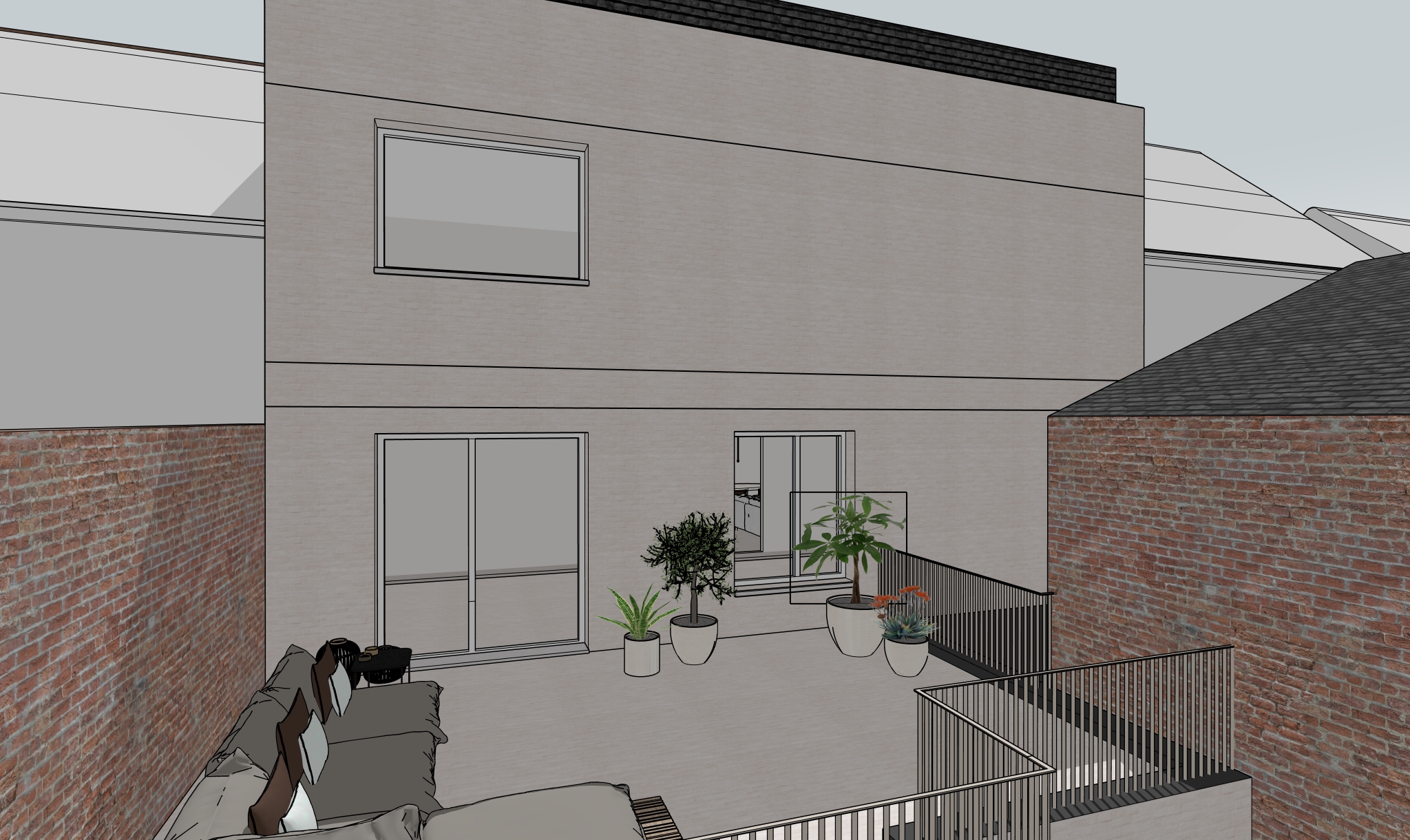 make sure the windows and fence of the middle building are light beige and the facade is small light brick